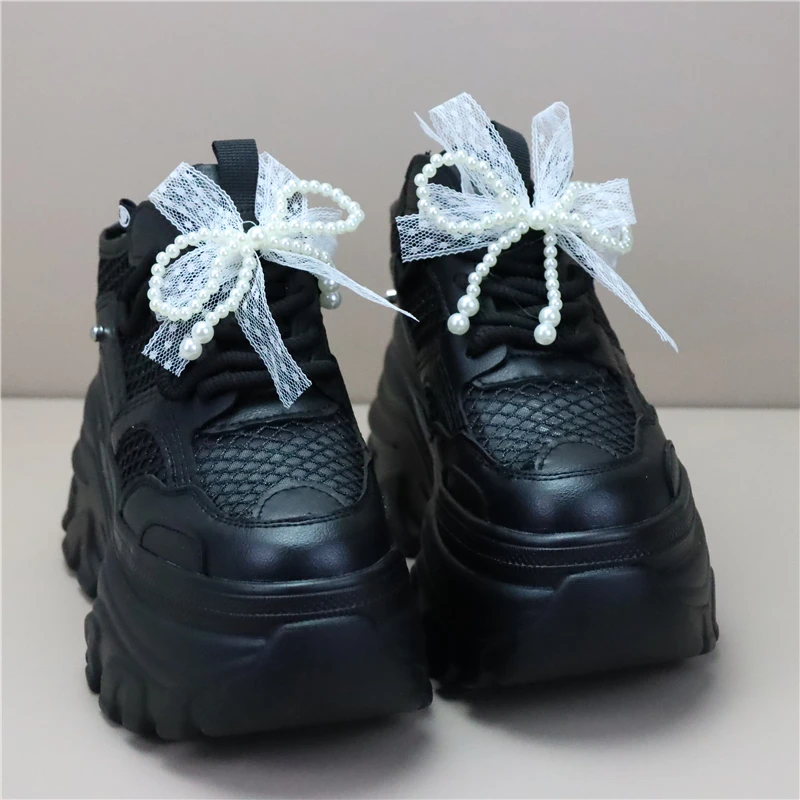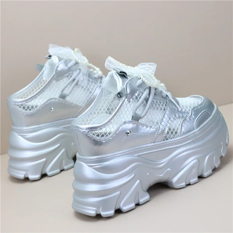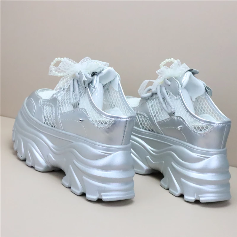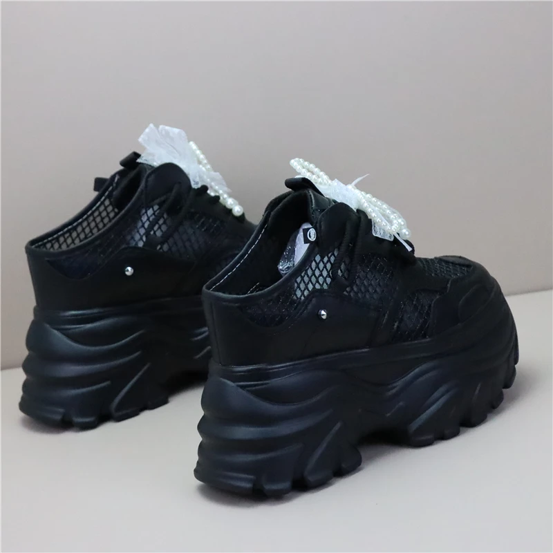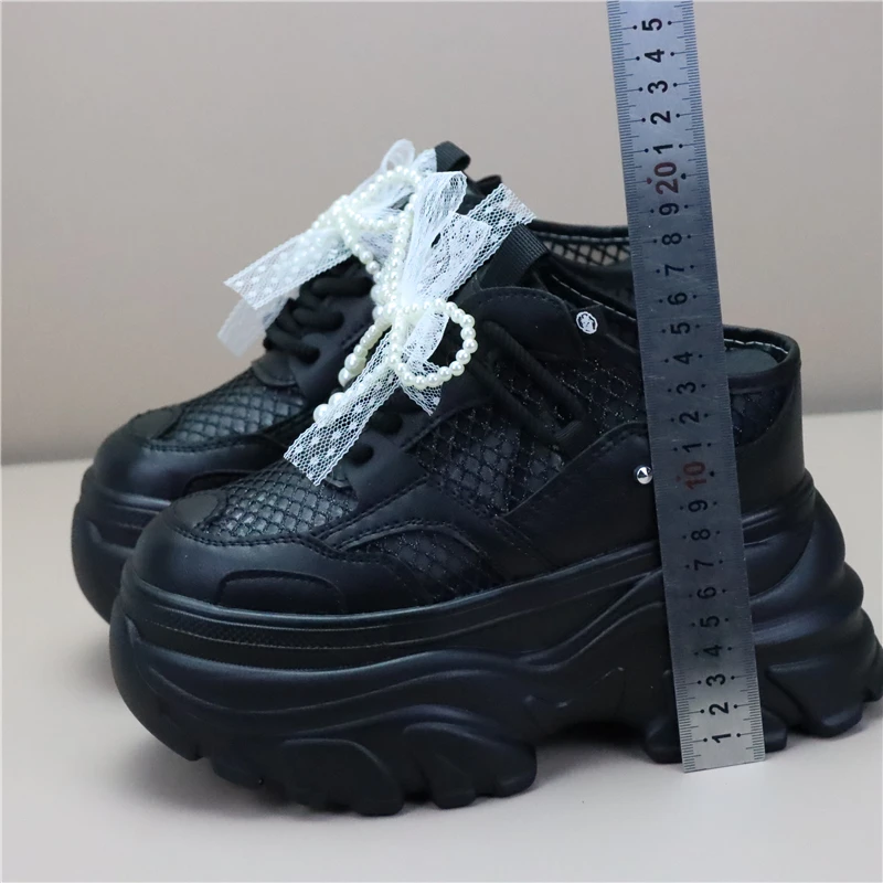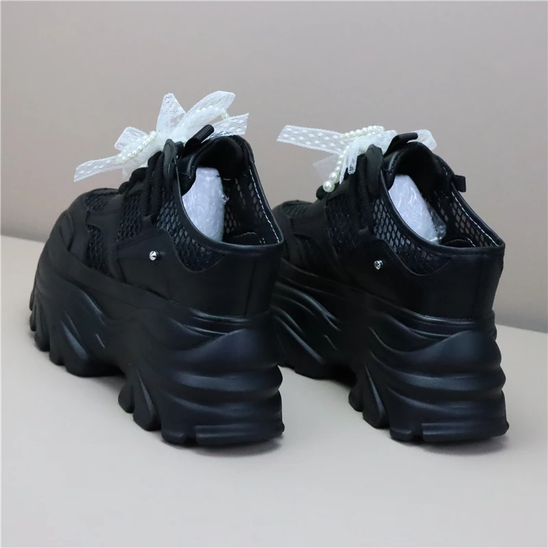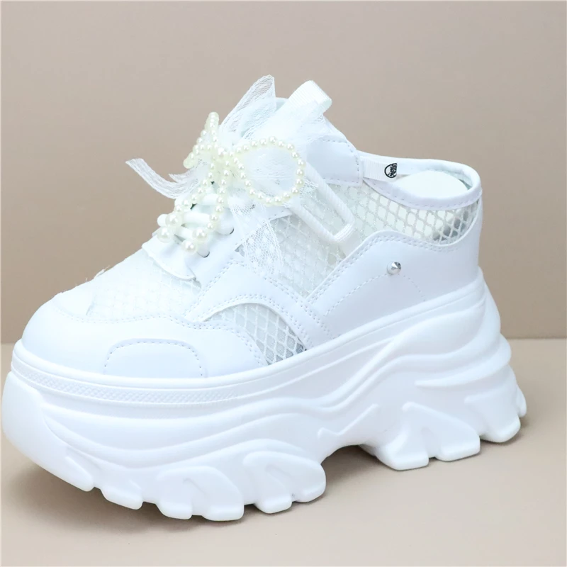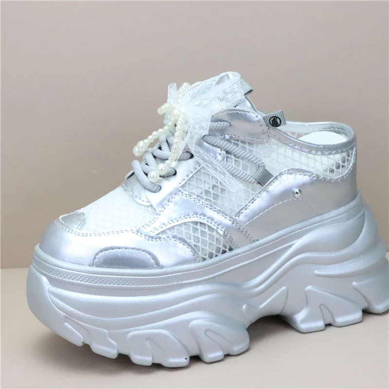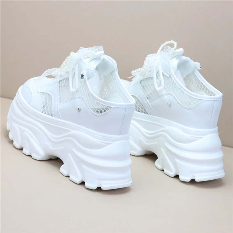 Women High Platform Slippers 8CM Wedges Shoes Woman Outside Genuine Leather Casual Chunky Sneakers Summer Breathable Slippers