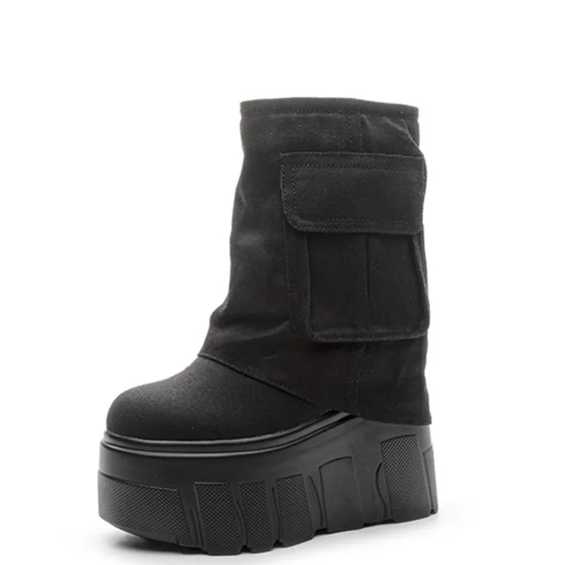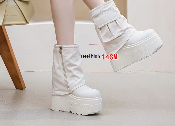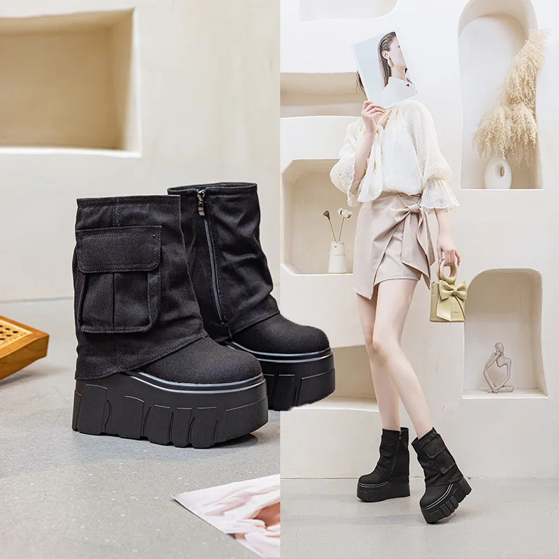 2025 Platform Heels Women Ankle Boots Soft Leather Thick High Heel Buckle Platform Boots Winter Autumn Boots Warm Shoes Big