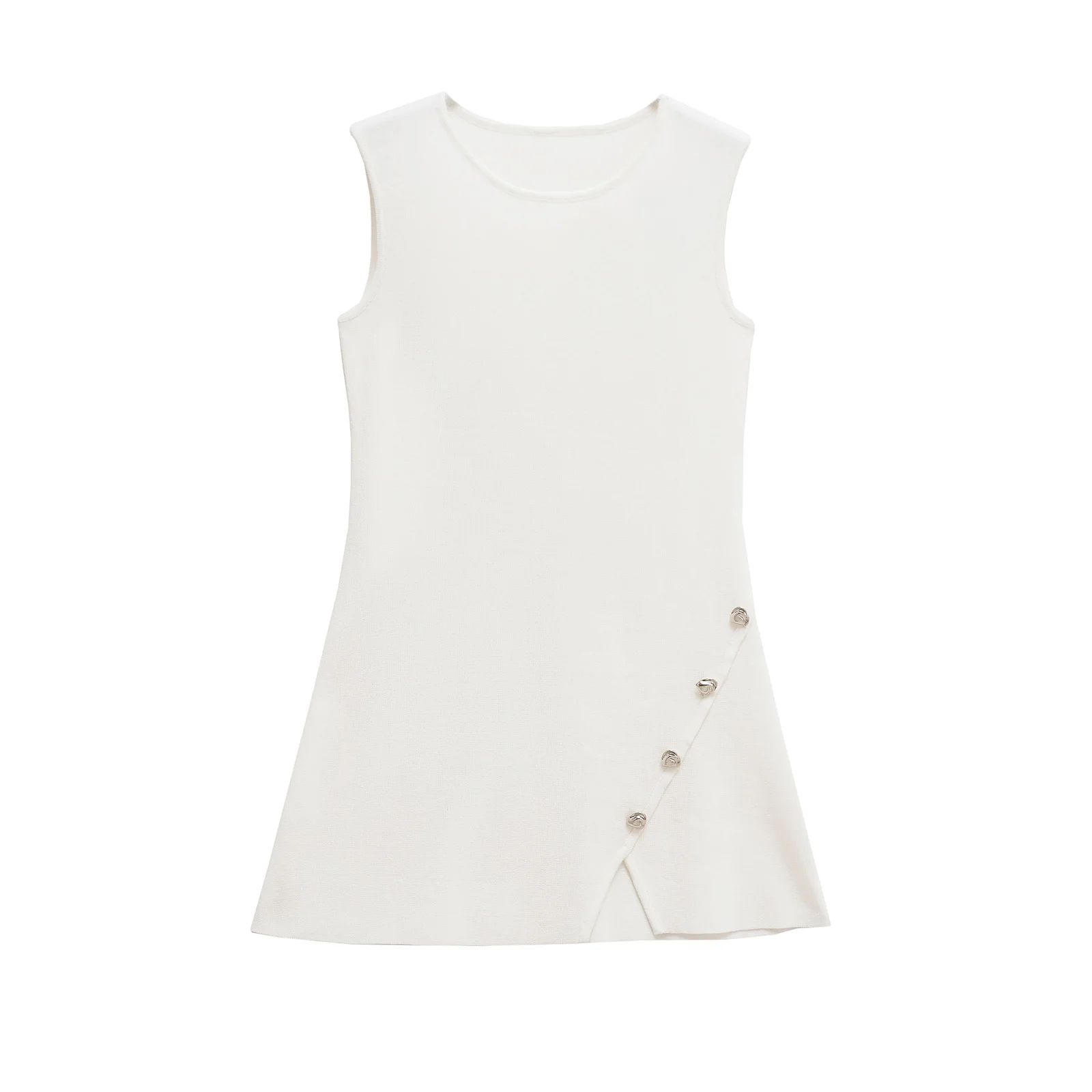 2025 Spring/Summer New Women’s Knitted Sleeveless Round Neck Fashion Simple Short Dress From Europe And America