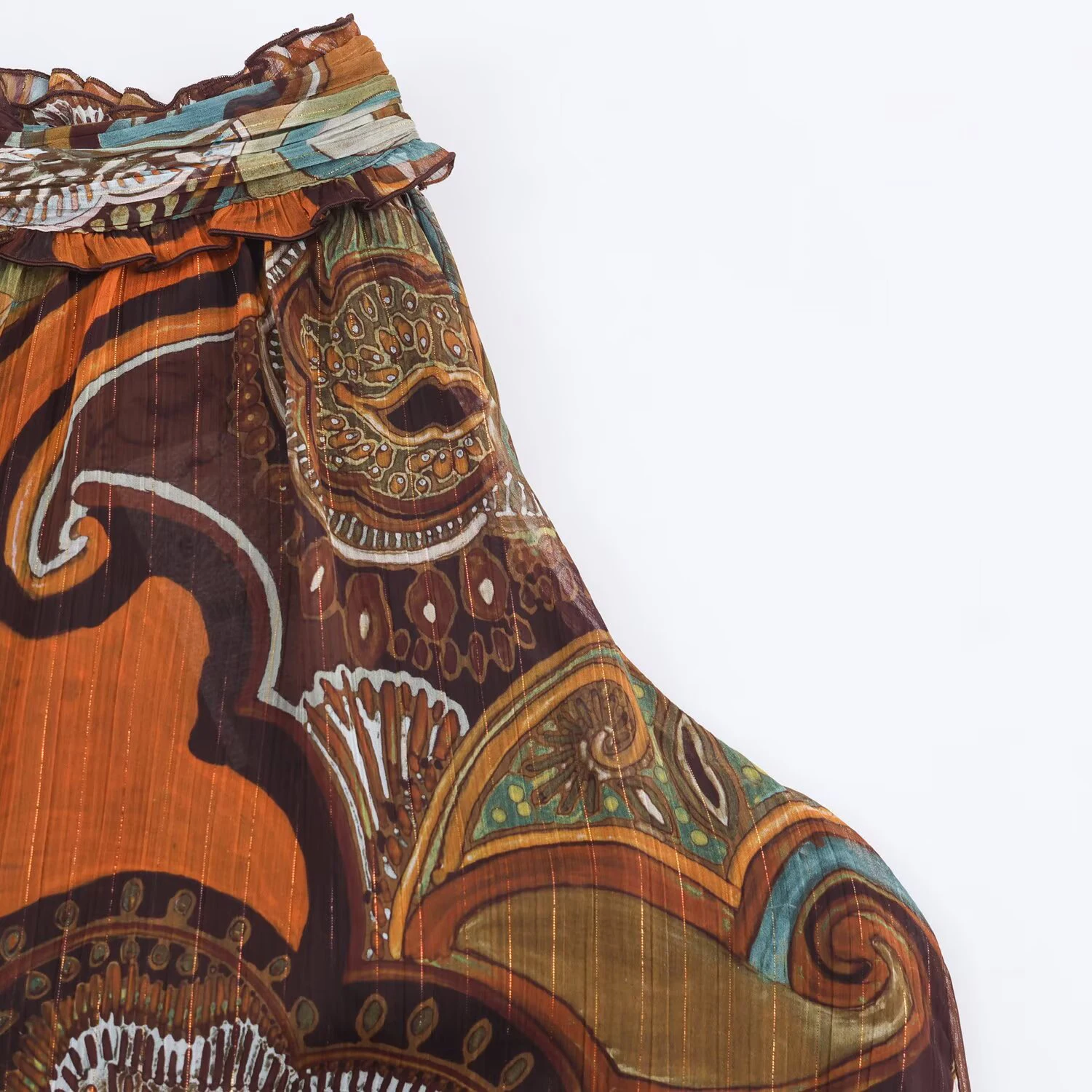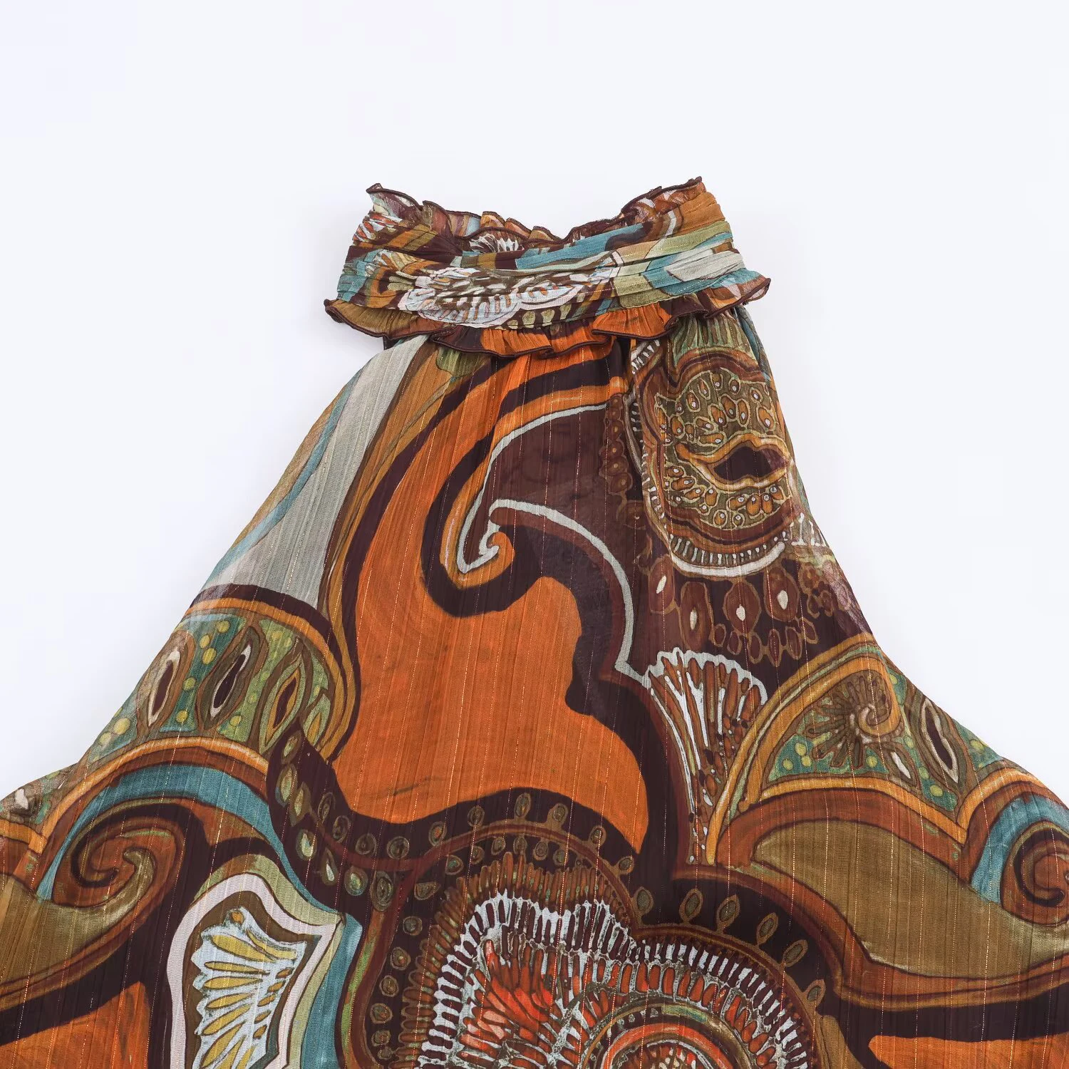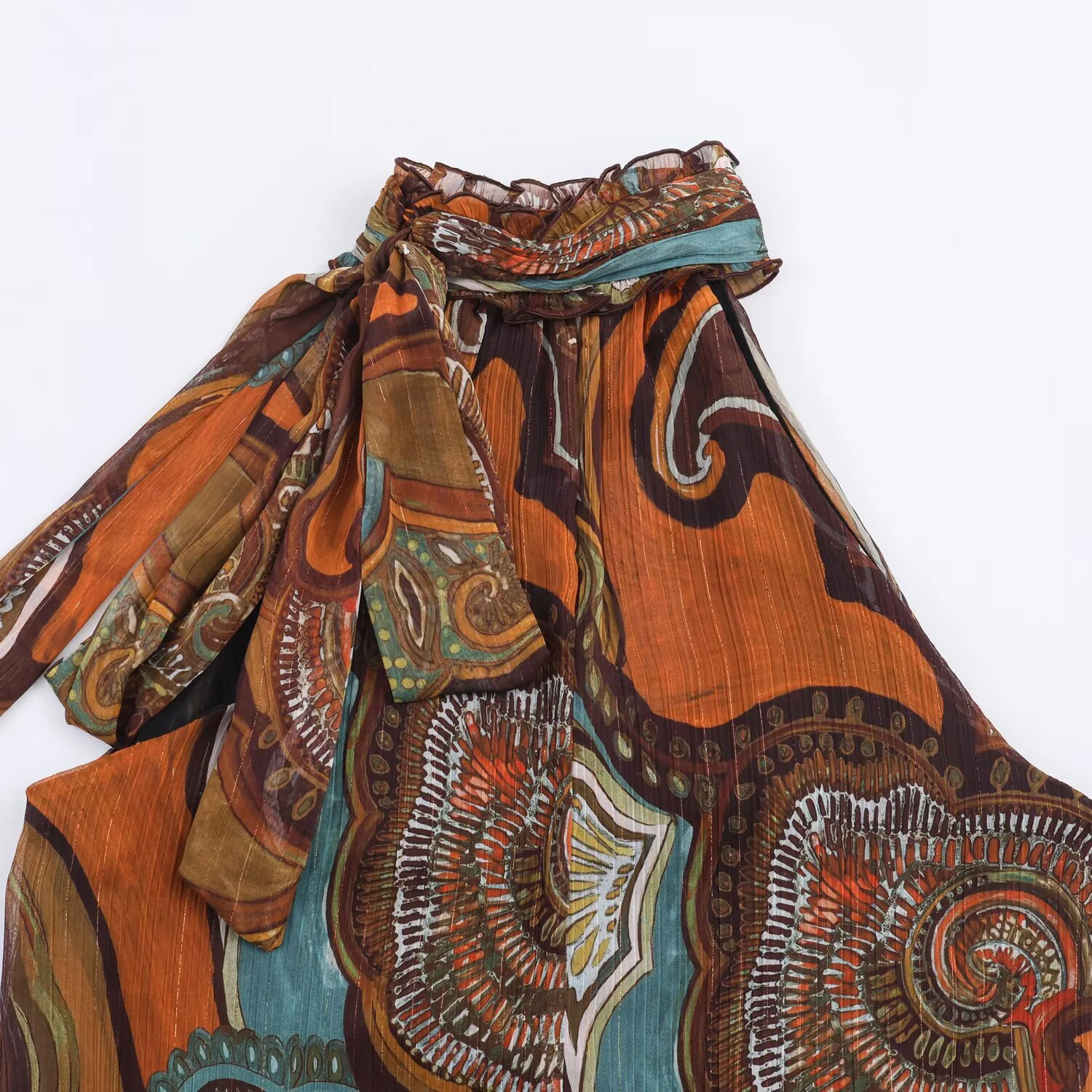 2025 Winter New Women’s Clothing European and American Style Fashion Personalized Temperament Printed Asymmetric Top