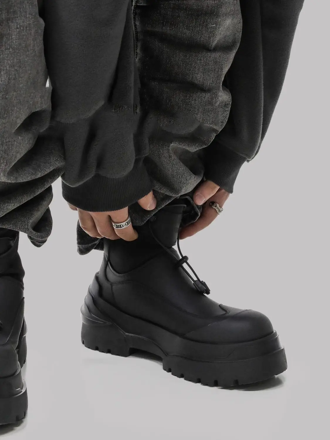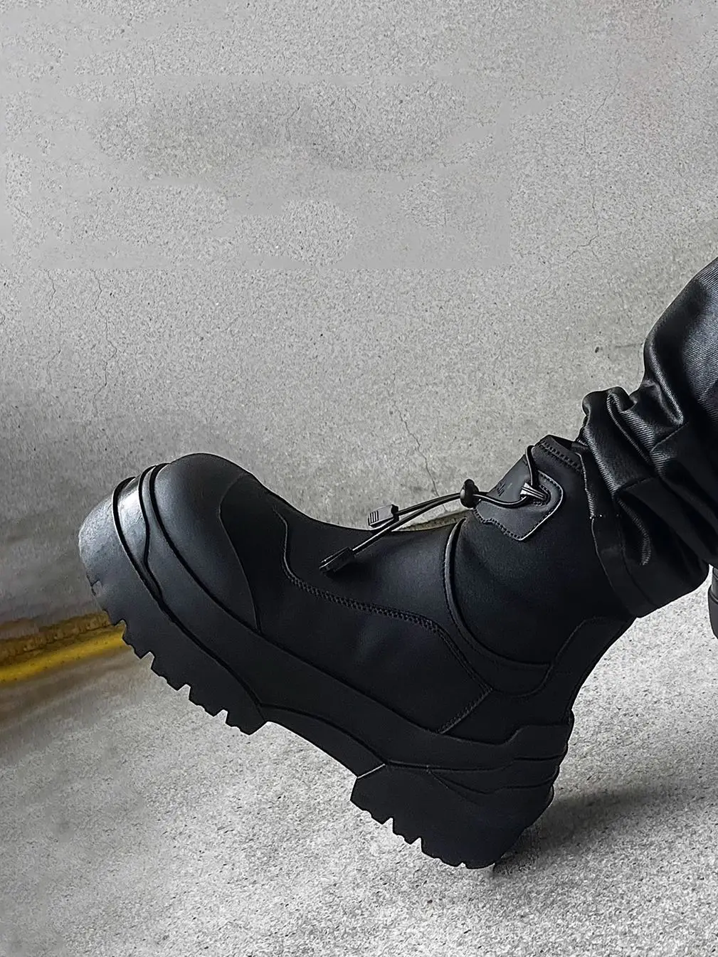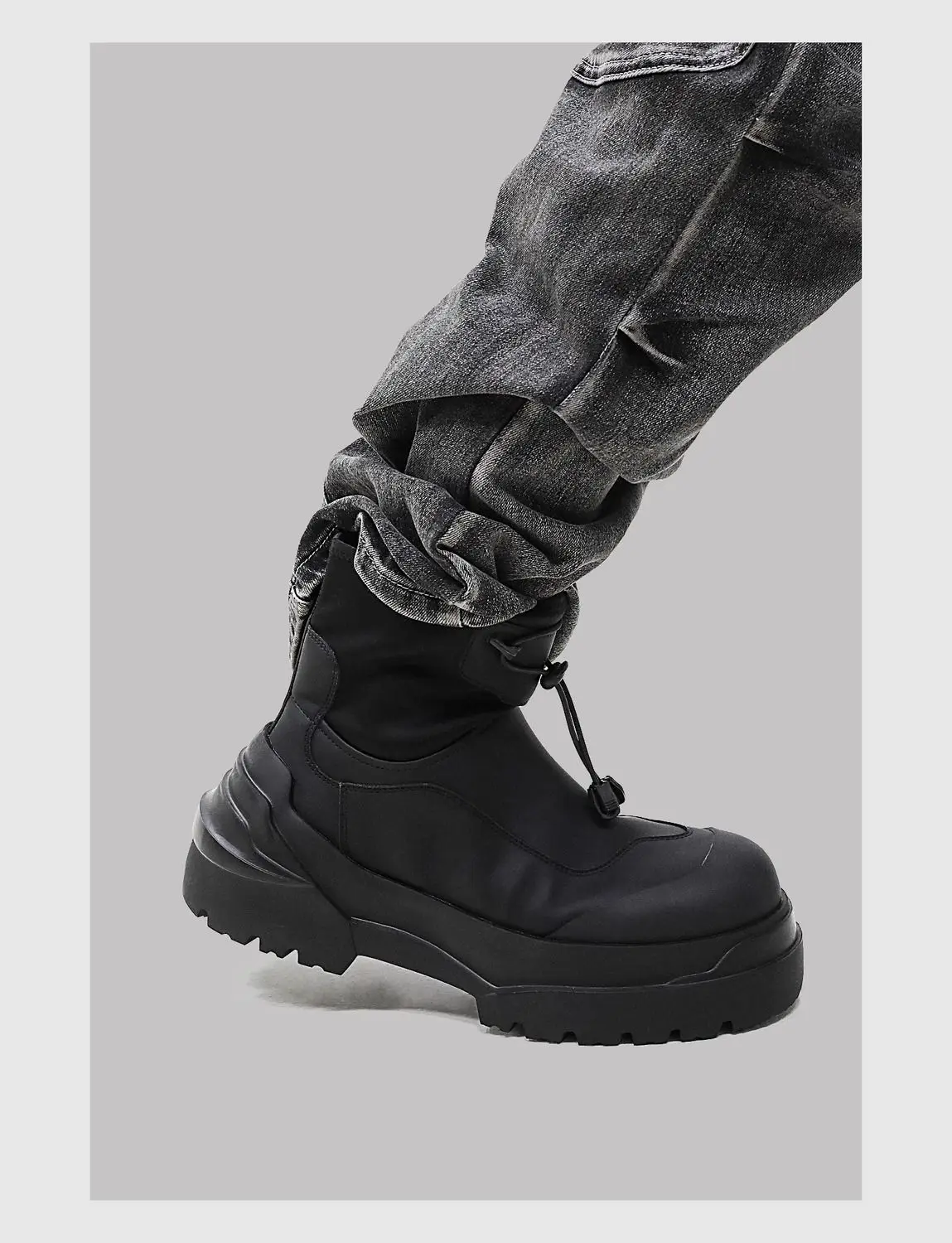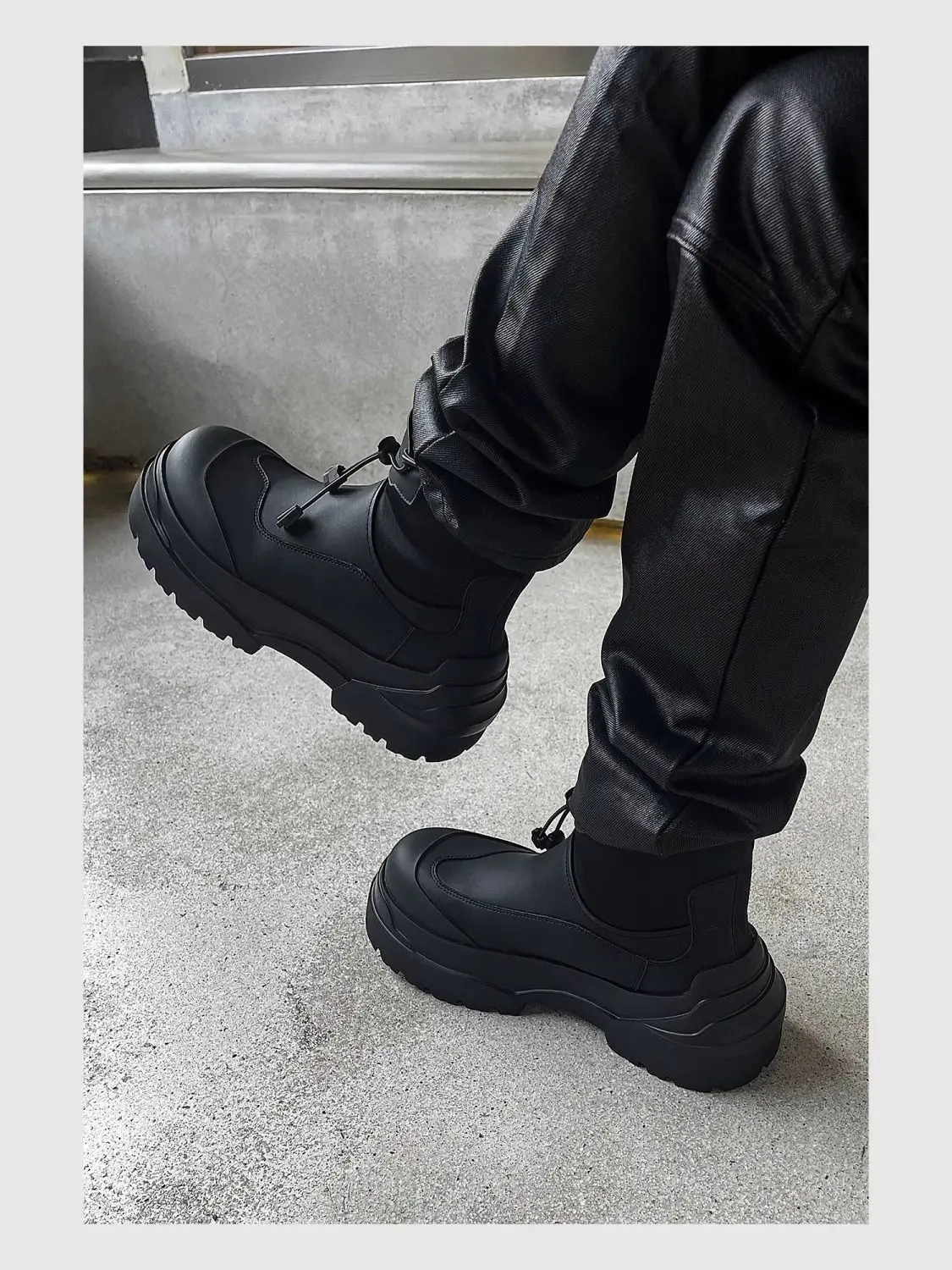 2025 Winter Velvet High-top Men’s Black British Style Tooling Tide Outdoor Hiking Platform Locomotive Chelsea Boots