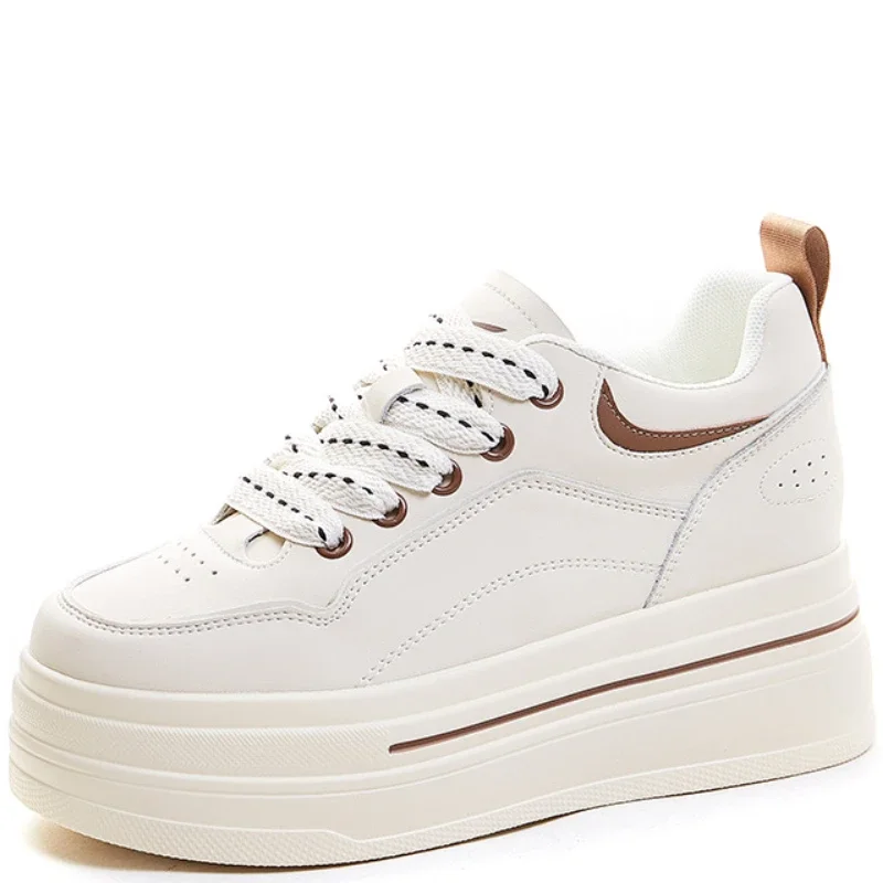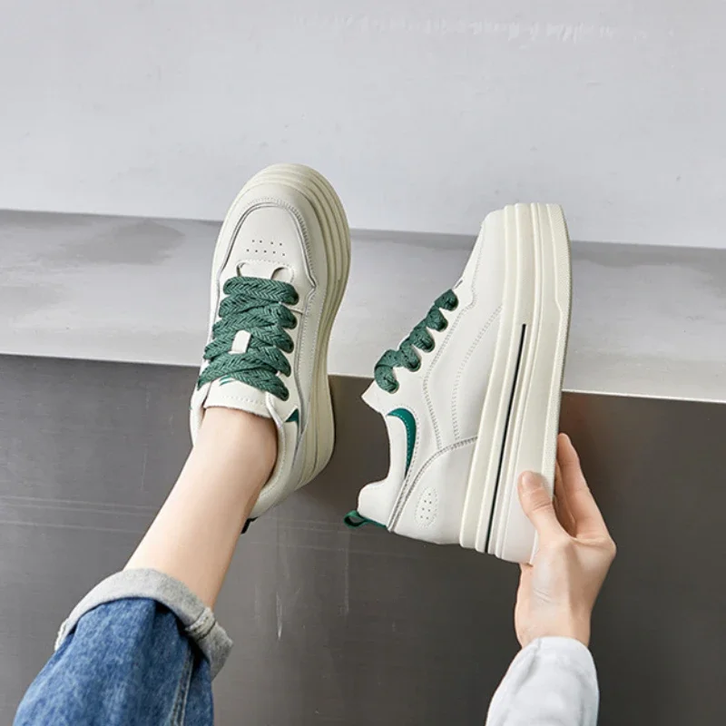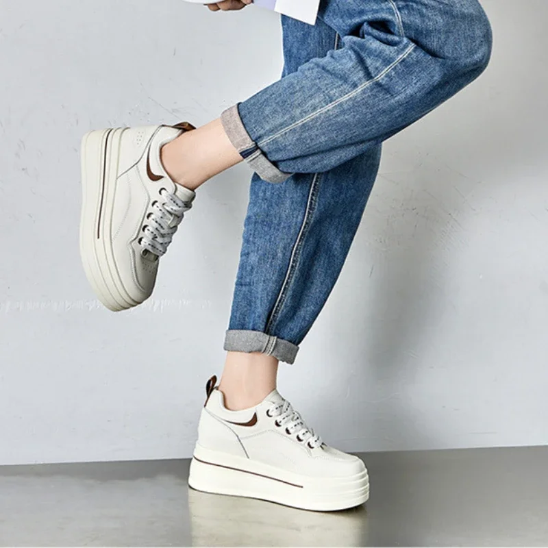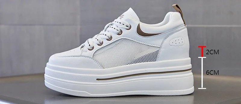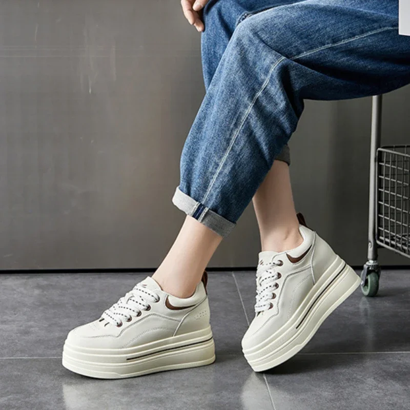 8cm 2025 New Genuine Leather Chunky Sneakers Vulcanize Autumn Thick Soled Pumps Women Platform Wedge Fashion Ladies Spring Shoes