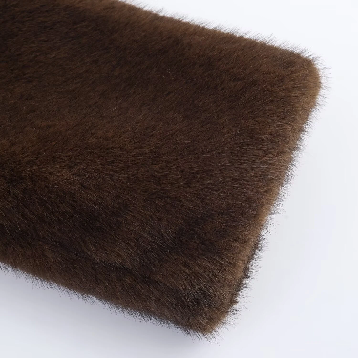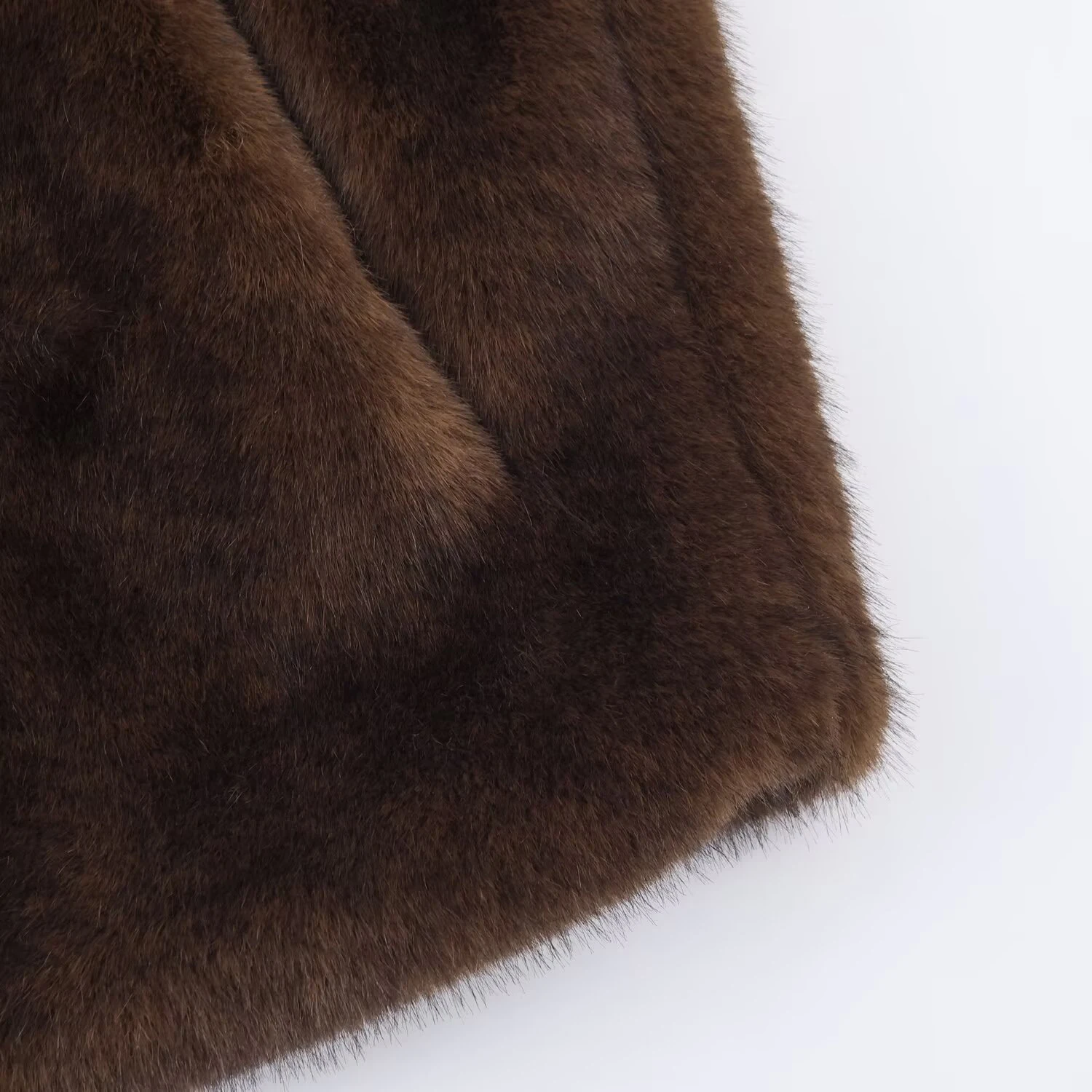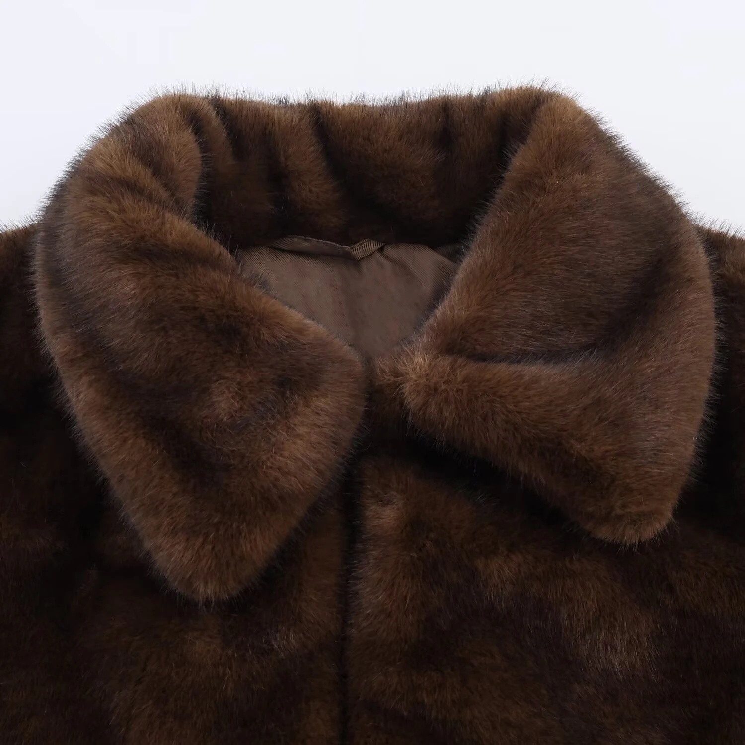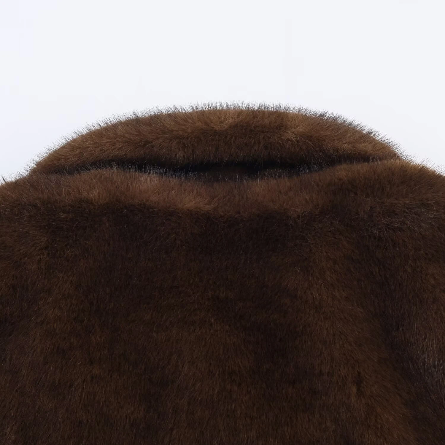 Brown collar thickened plush faux fur coat high street American environmentally friendly short winter coat for women