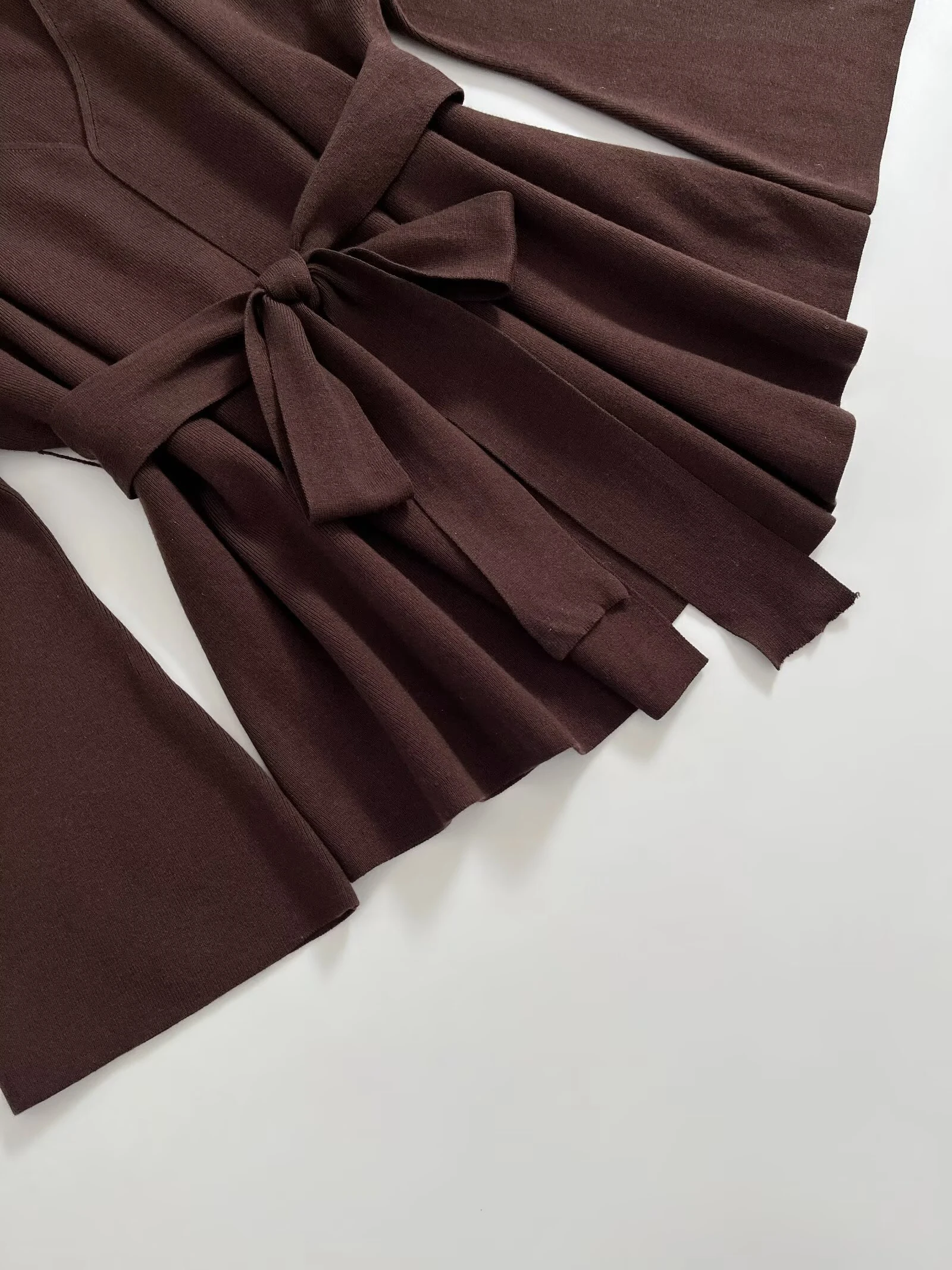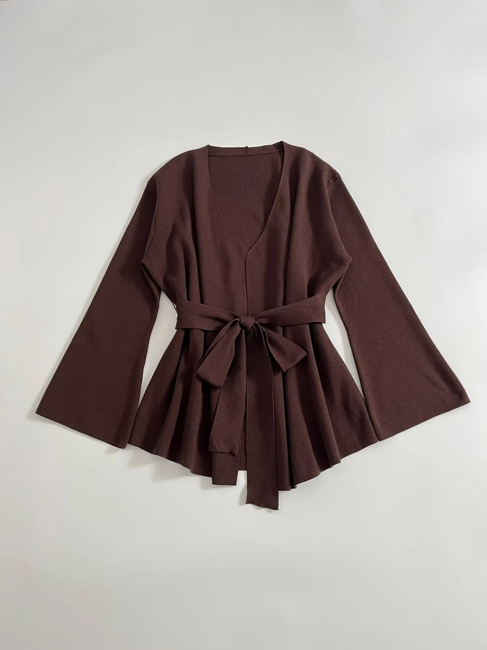 European and American style 2025 autumn new product women's V-neck long sleeved flat needle waistband knitted jacket