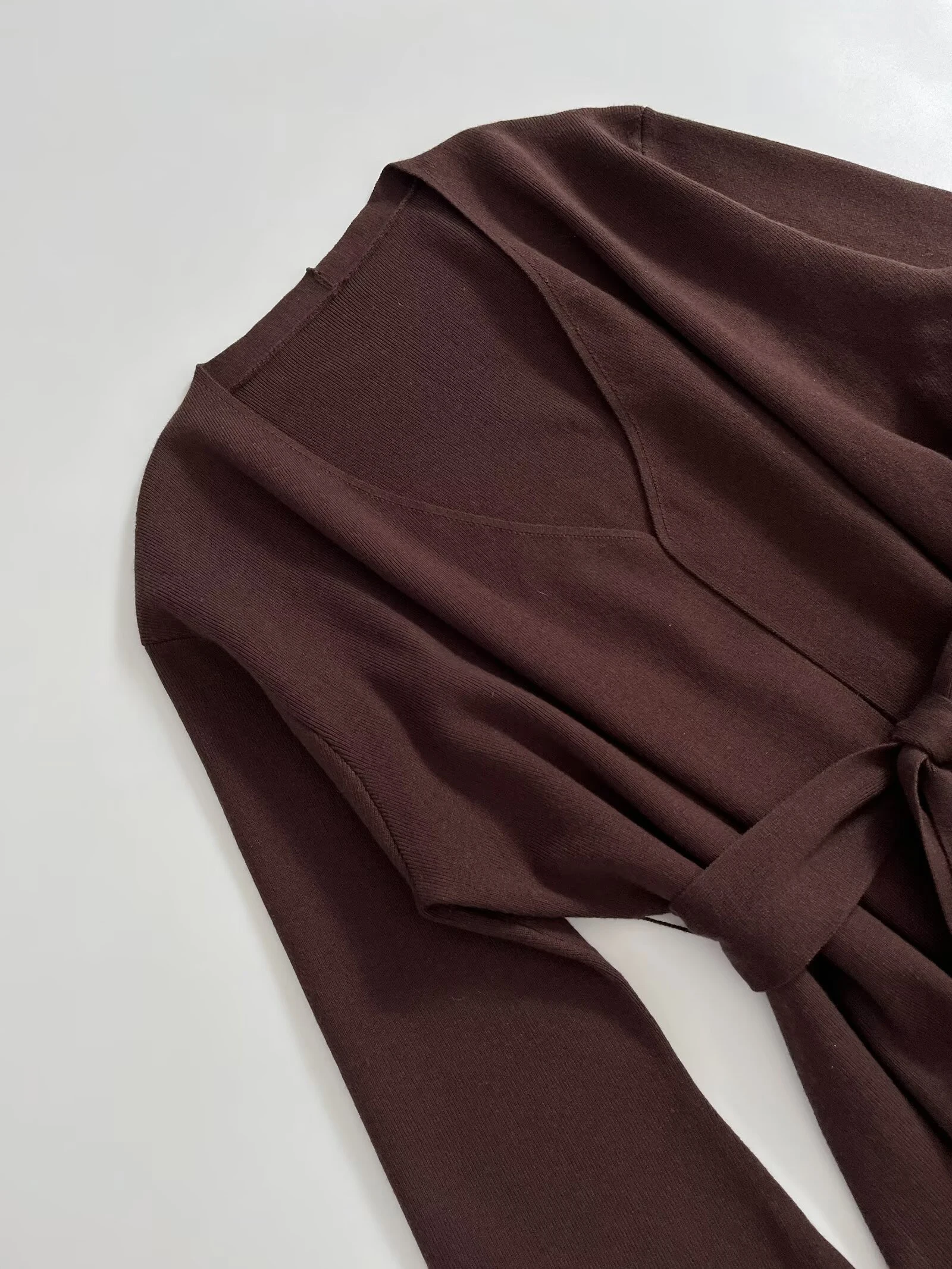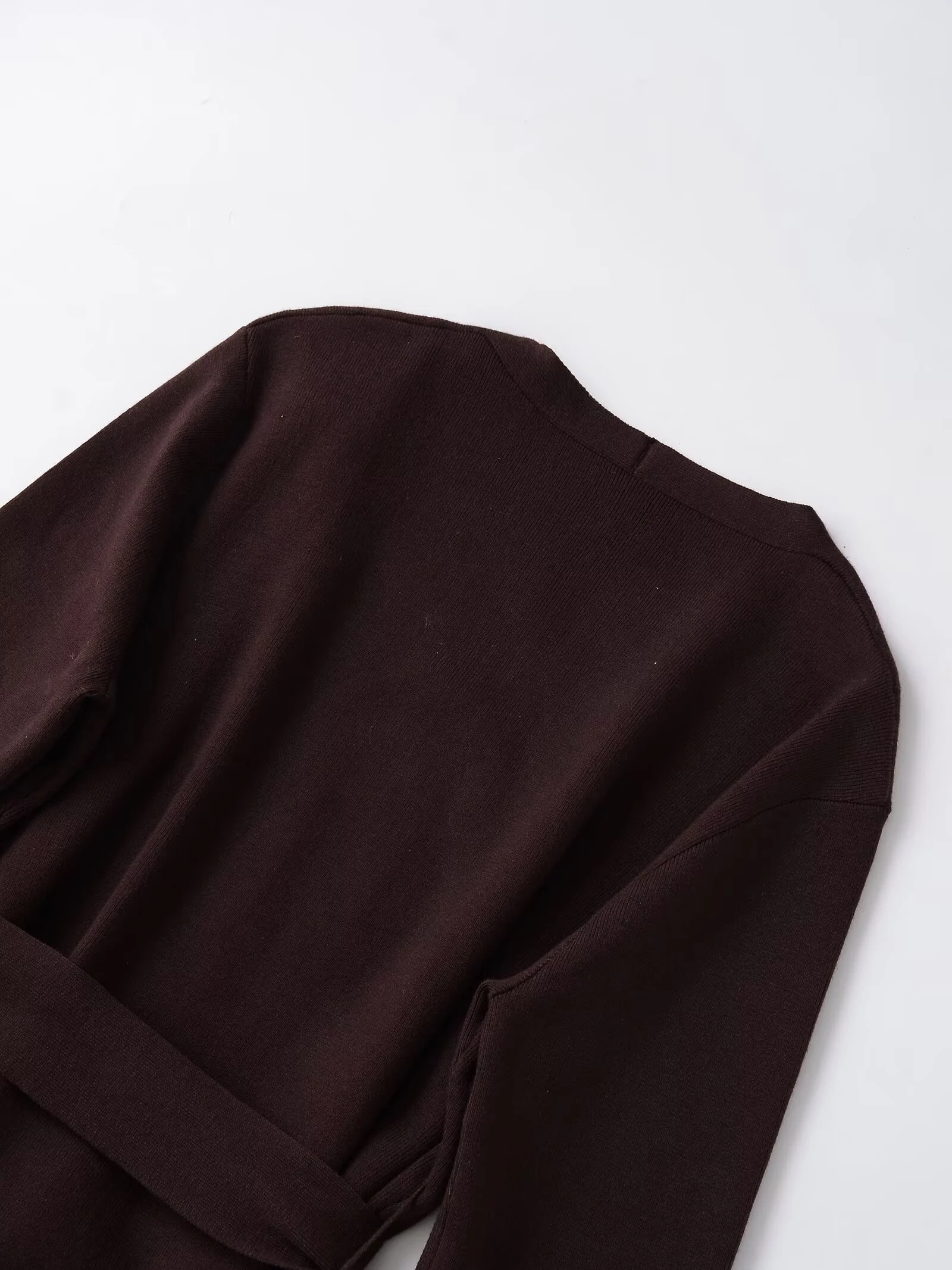 Be the first to review “European and American style 2025 autumn new product women’s V-neck long sleeved flat needle waistband knitted jacket”