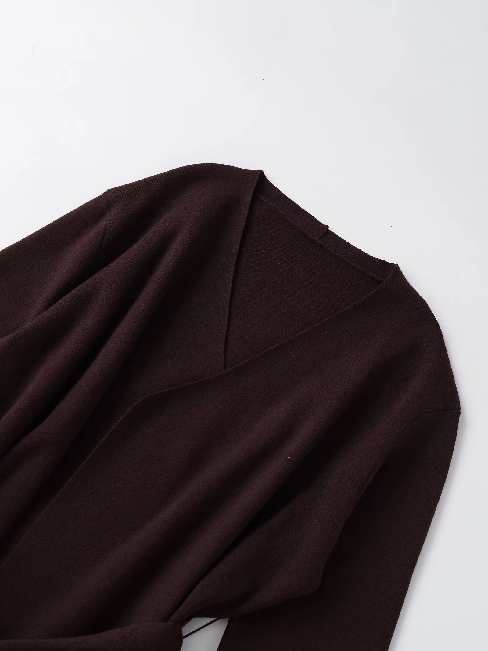 Be the first to review “European and American style 2025 autumn new product women’s V-neck long sleeved flat needle waistband knitted jacket”