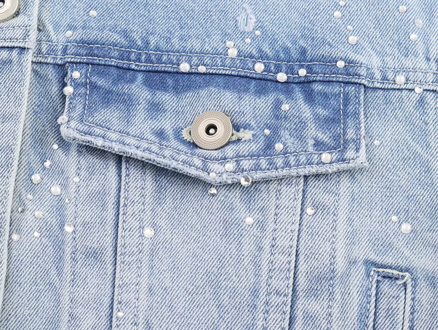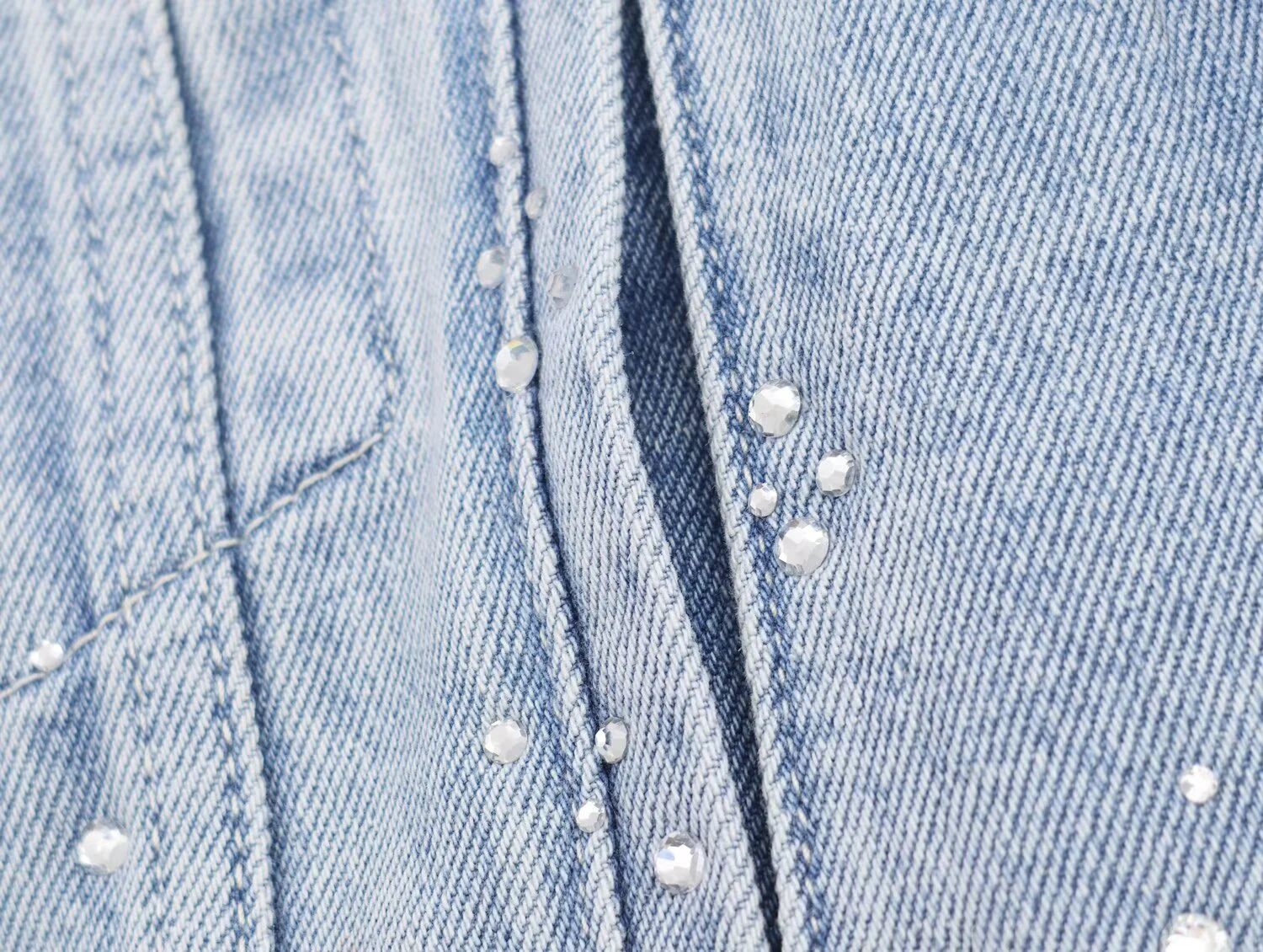 European and American style women’s clothing new rhinestone decoration short denim jacket jacket long pants set