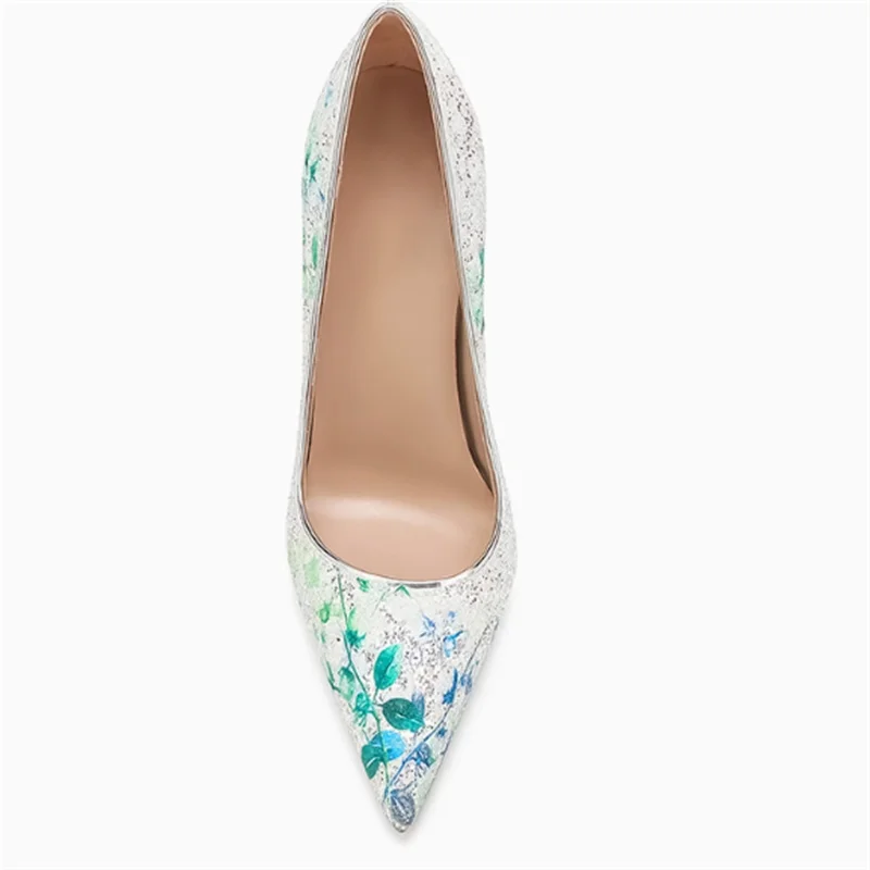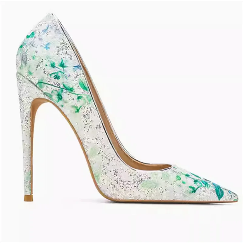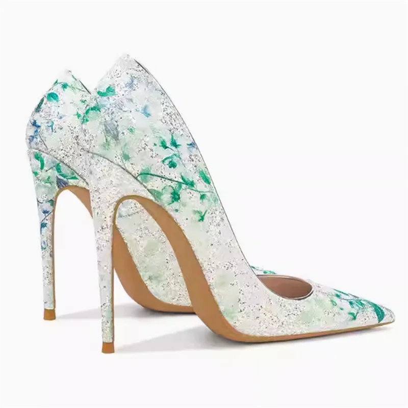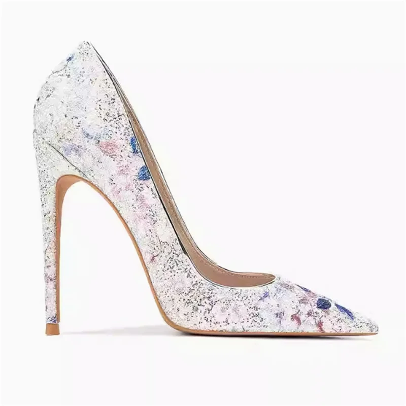European Style Sexy Wedding Party Slim High Heels Women’s Shoes Slim Heels High Heels Fashion Sparkly Sequin Single Shoes