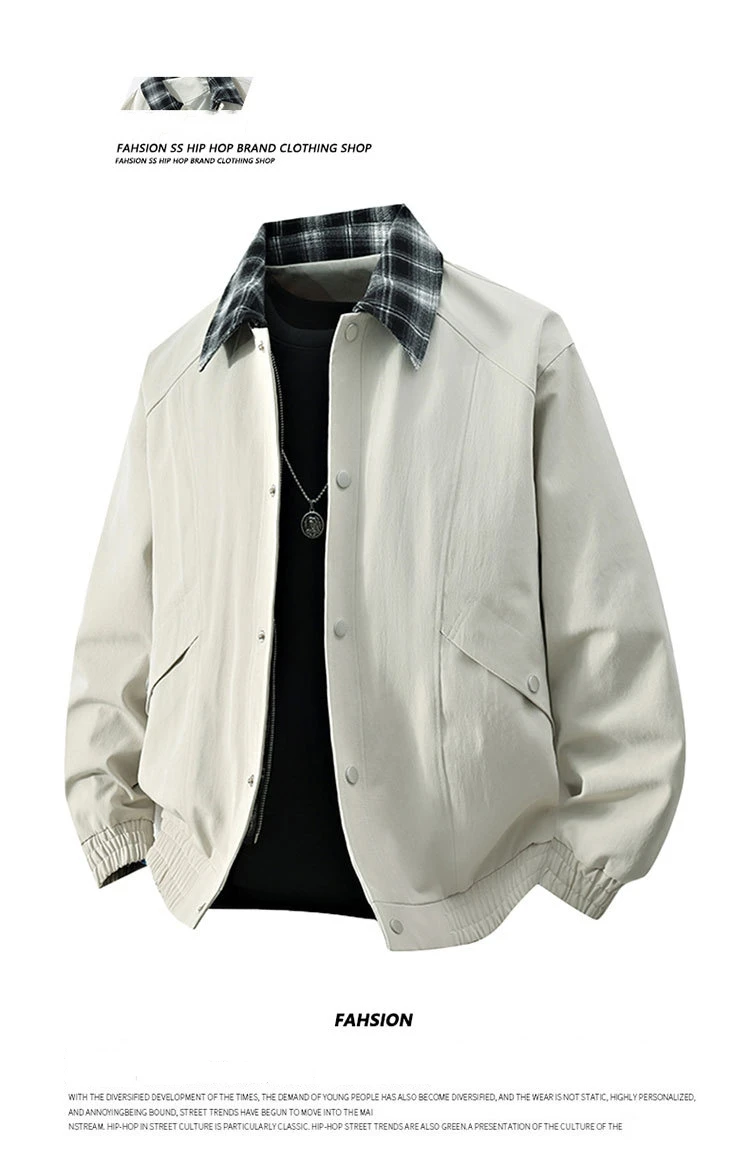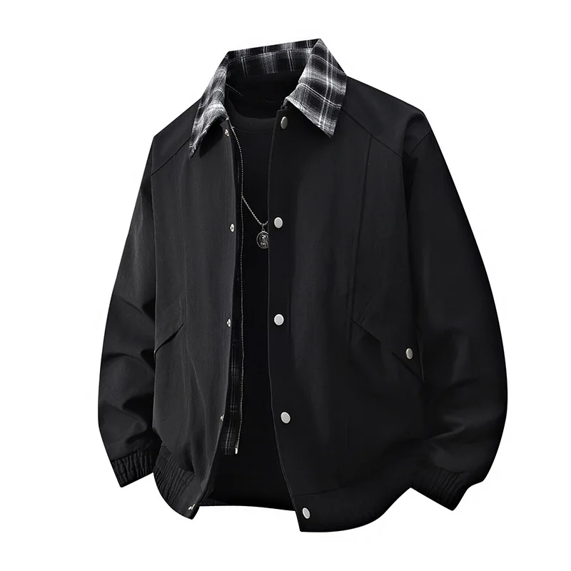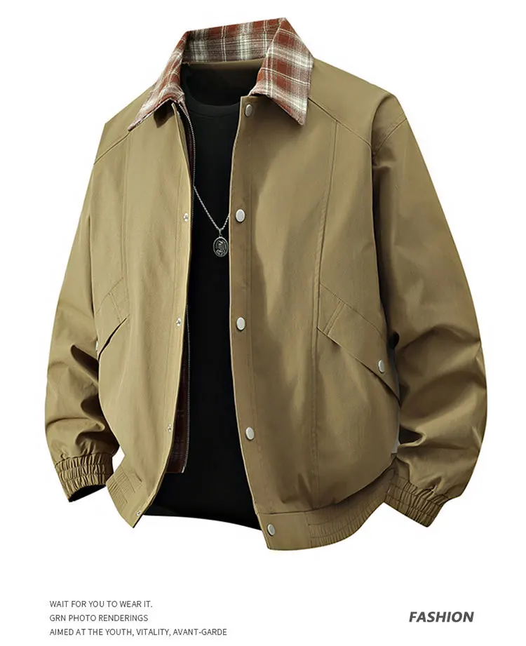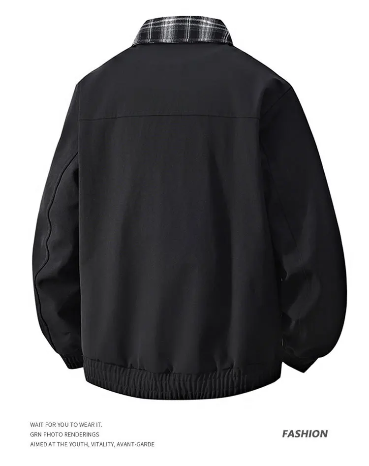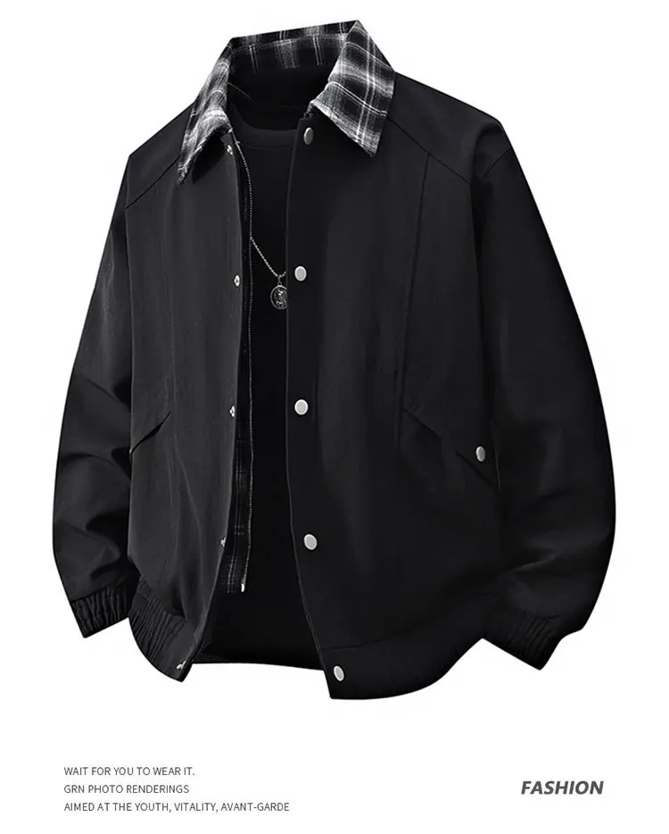 Men’s clothing faux two-piece jacket men’s winter loose-fit rugged collar retro plaid oversized jackets for men
