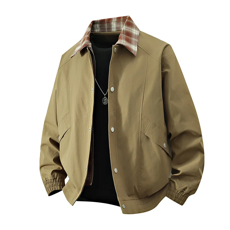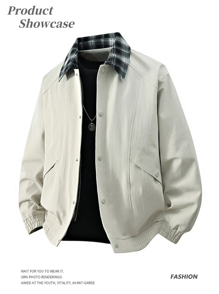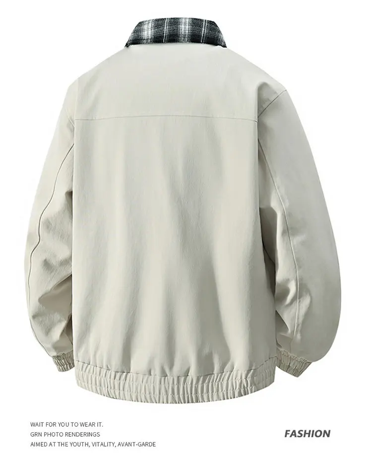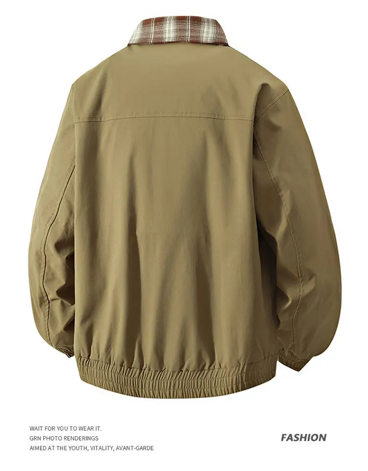 Men’s clothing faux two-piece jacket men’s winter loose-fit rugged collar retro plaid oversized jackets for men