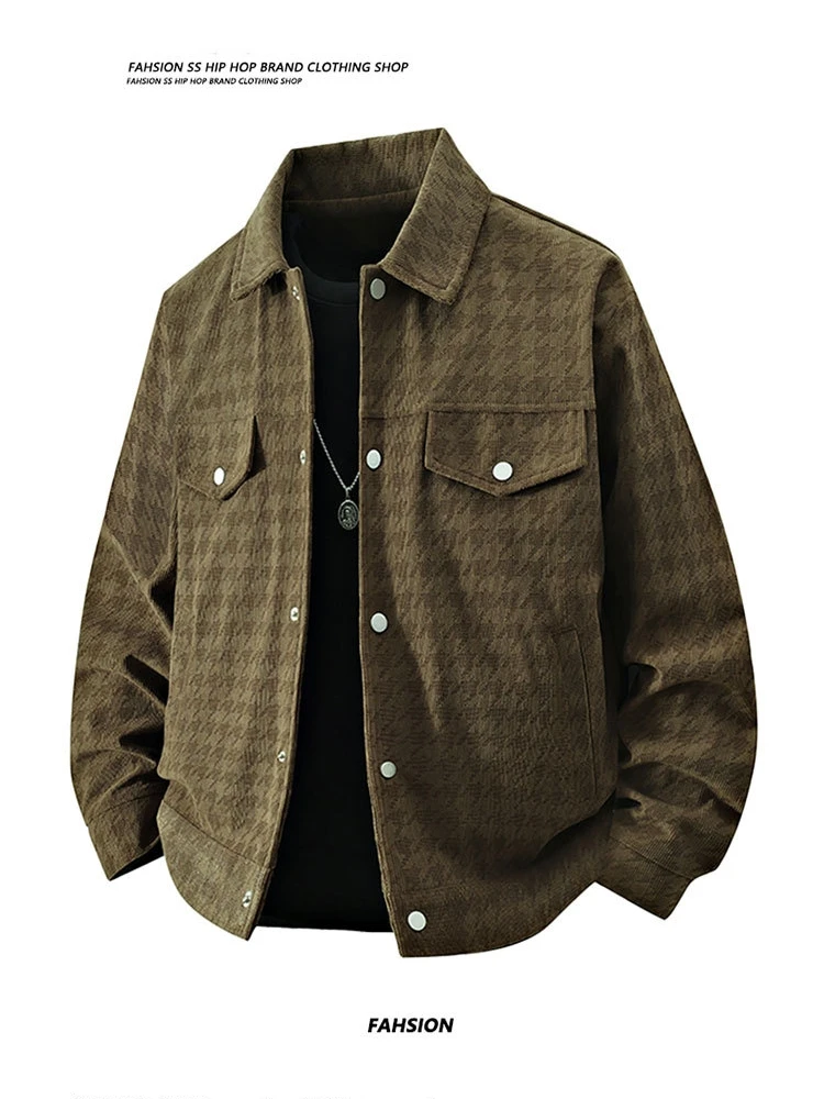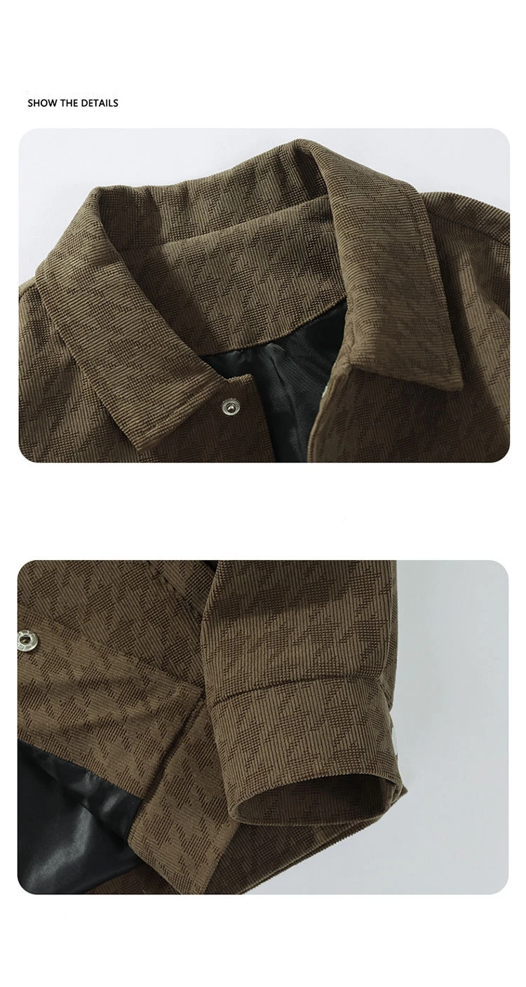 Men’s plus Size Reversible Collar Workwear Jacket Vintage Plaid Urban Winter Style Casual Youth