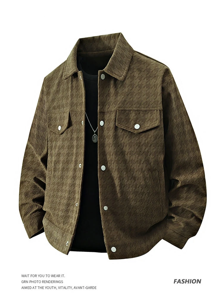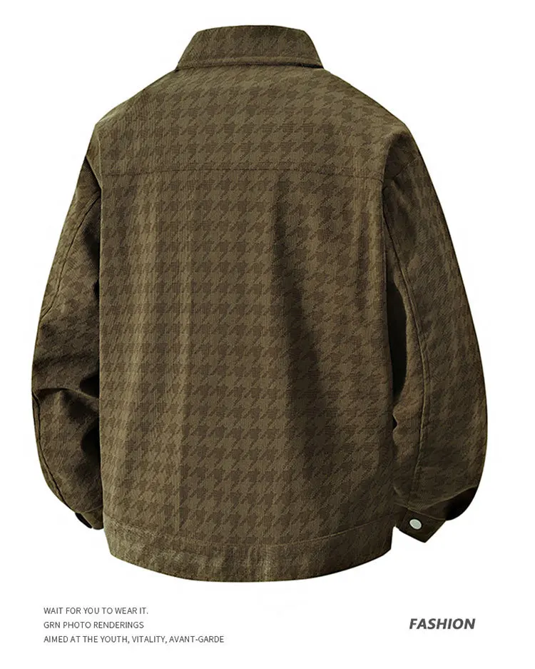 Men's plus Size Reversible Collar Workwear Jacket Vintage Plaid Urban Winter Style Casual Youth