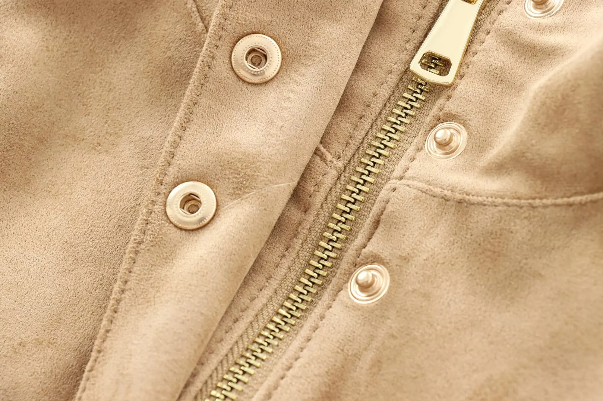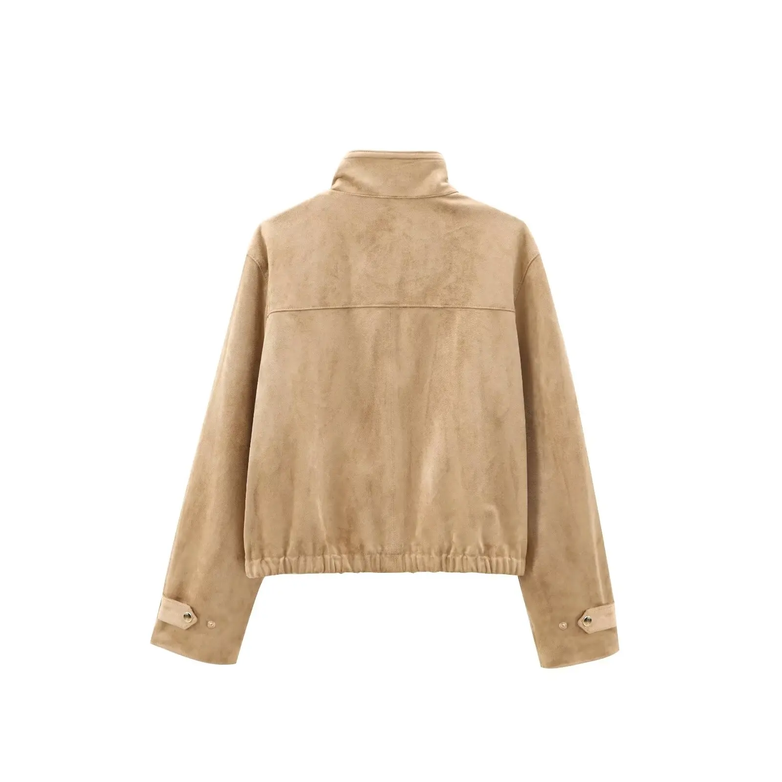 2025 Autumn New Women's Fashion European and American Style Personalized Stand up Collar Long Sleeve Cotton Belt Windbreaker