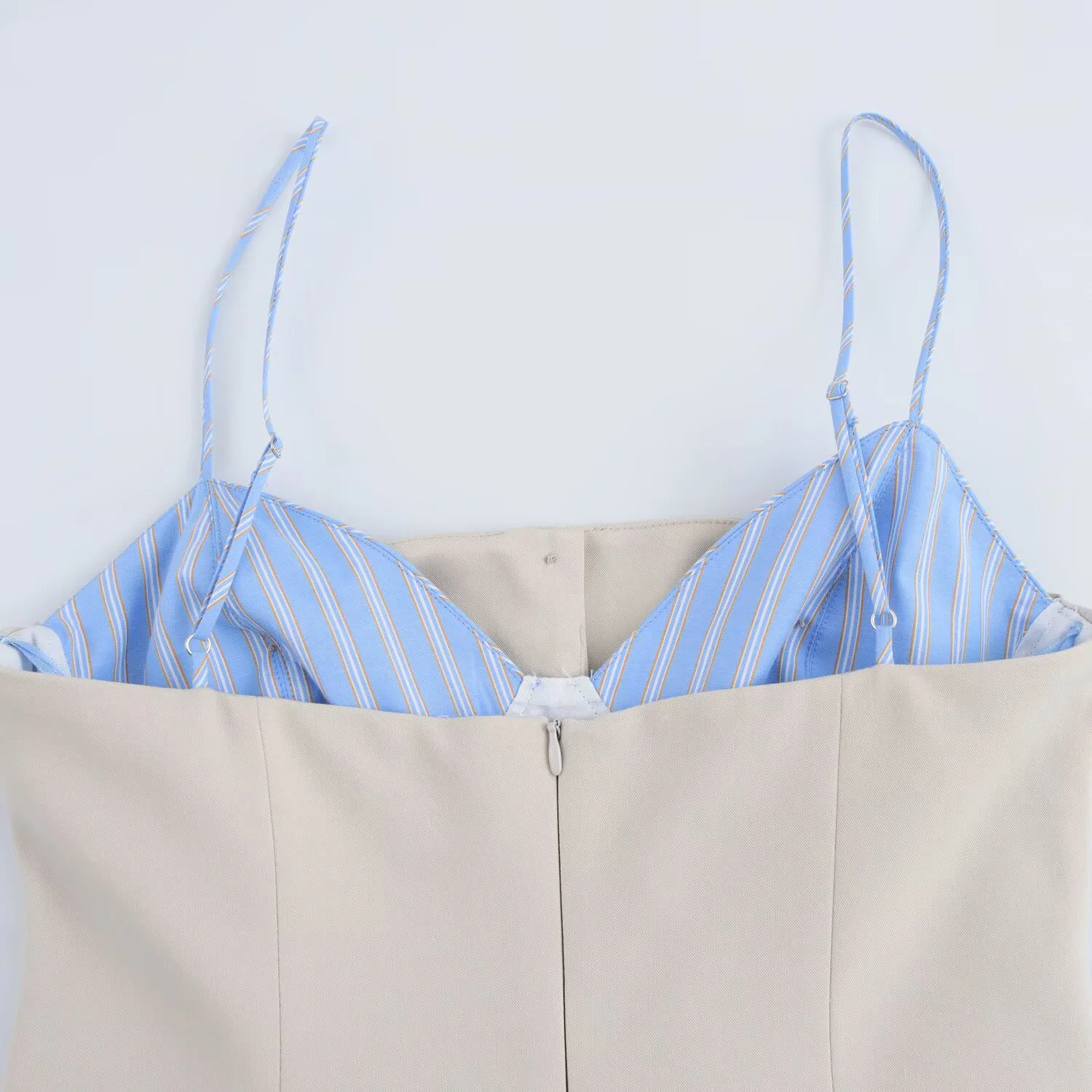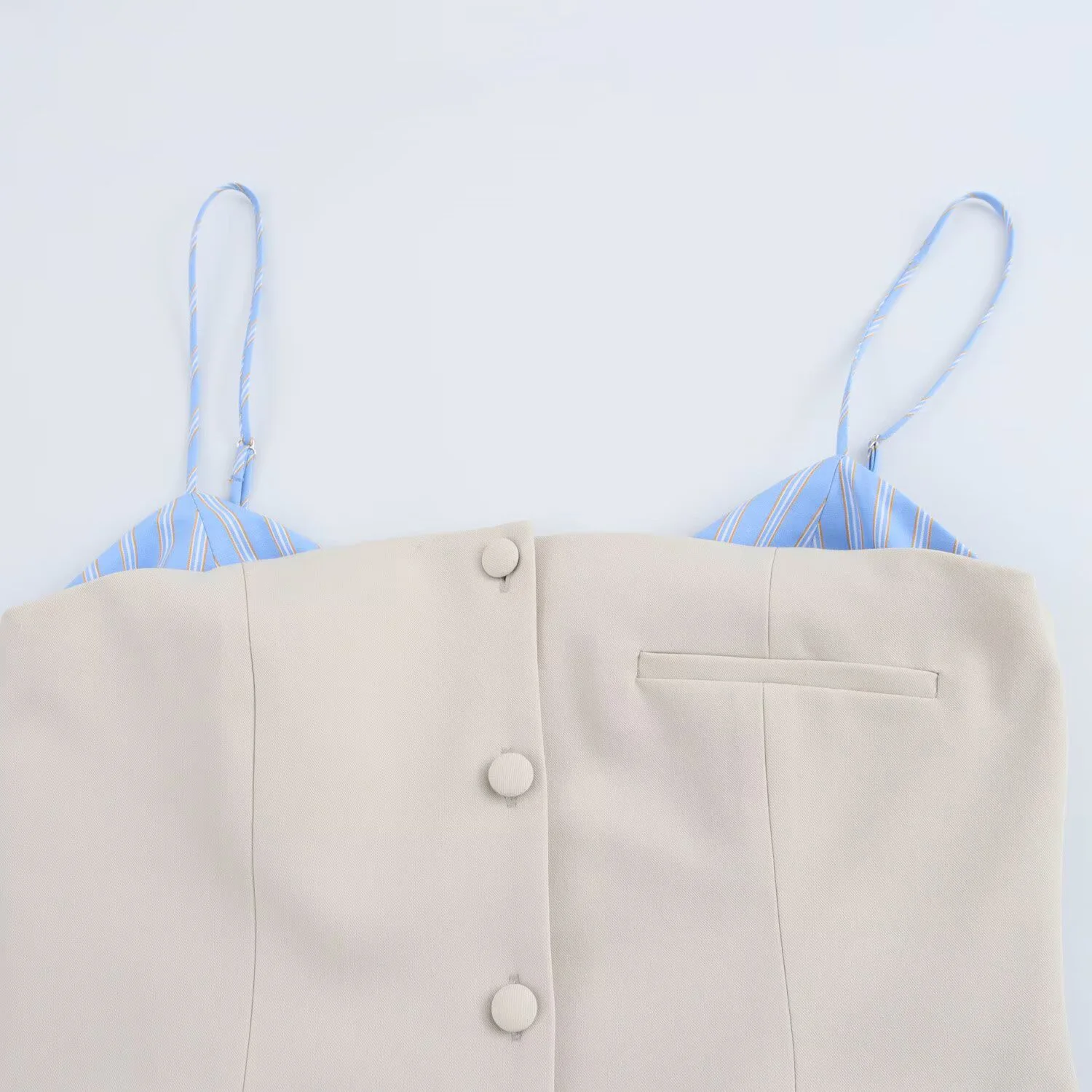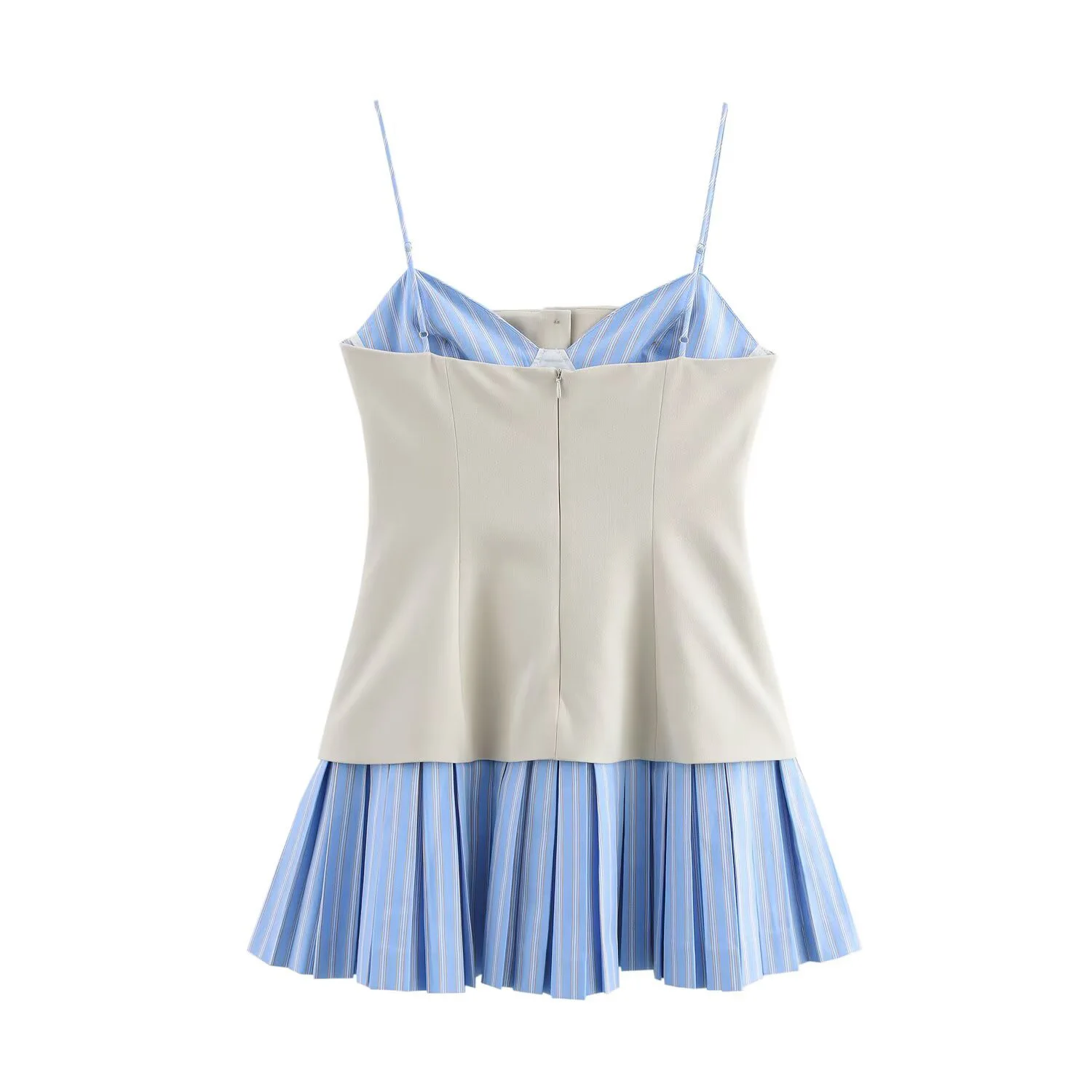 Spring And Summer Women’s Clothing New Arrival College Girl Style Fake Two-piece Splicing Pleated Skirt Suspender Dress