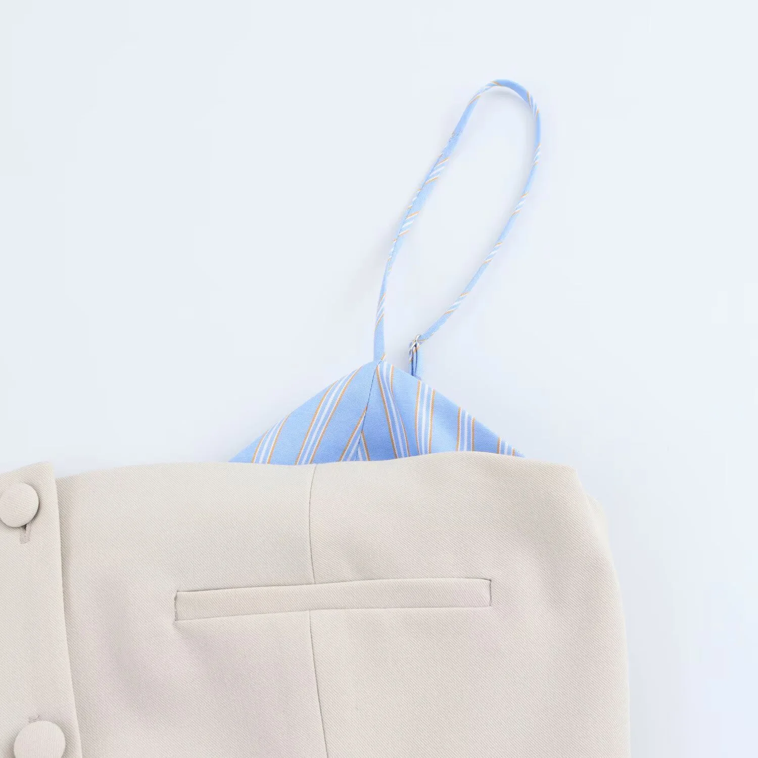 Be the first to review “Spring And Summer Women’s Clothing New Arrival College Girl Style Fake Two-piece Splicing Pleated Skirt Suspender Dress”