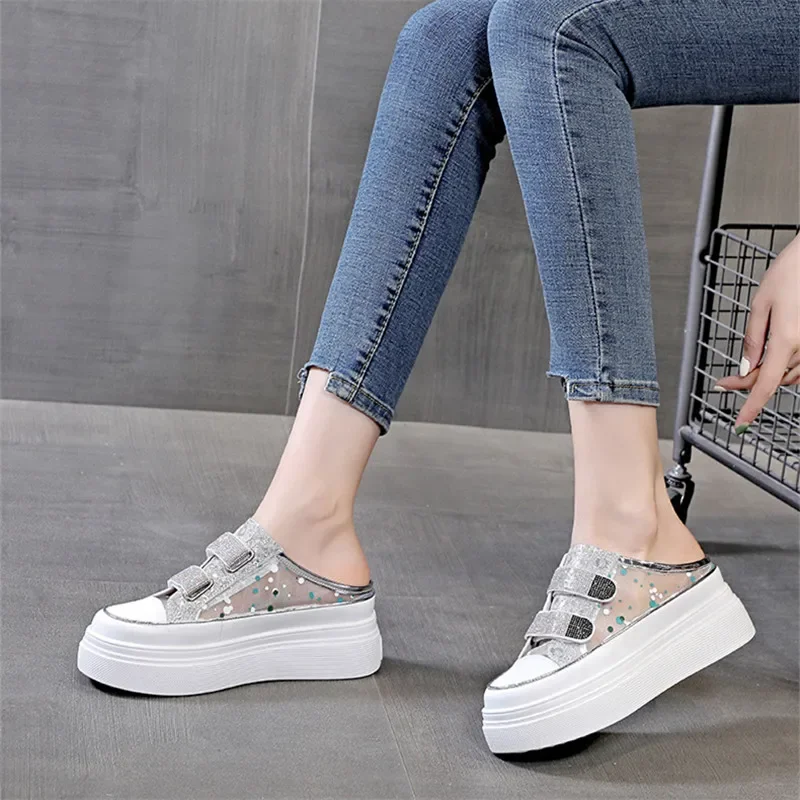 Top Quality Shoes Half Slippers Summer Thick-soled Toe-cap Sandals Fashionable Slippers for Women Outside Wear Slip on Sneakers