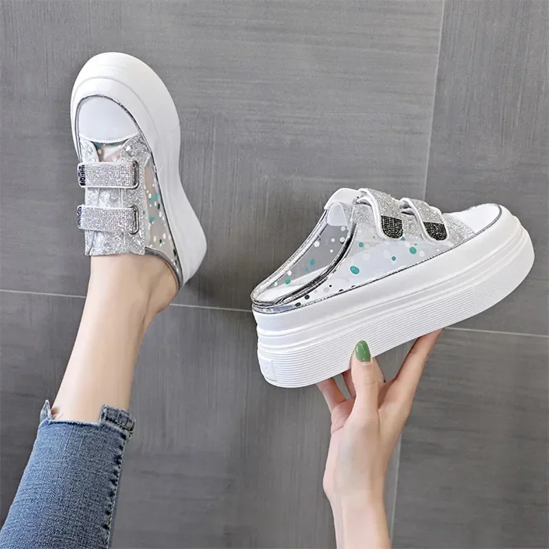 Top Quality Shoes Half Slippers Summer Thick-soled Toe-cap Sandals Fashionable Slippers for Women Outside Wear Slip on Sneakers
