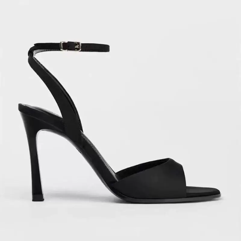 TRZA Women's shoes, black snake pattern, stylish high heels, slim heels, sexy square toe women's sandals