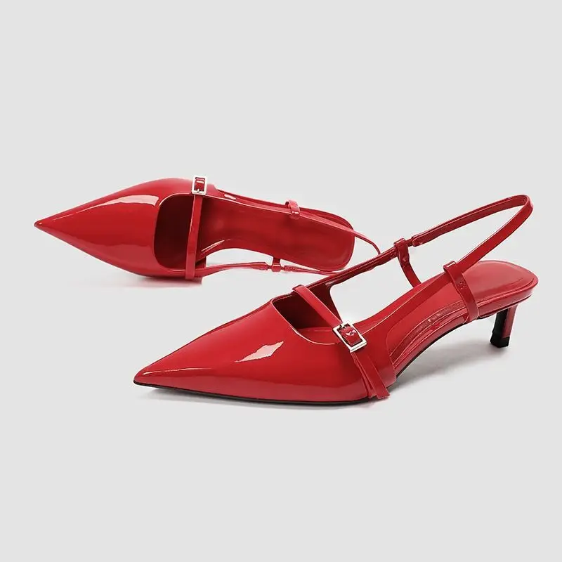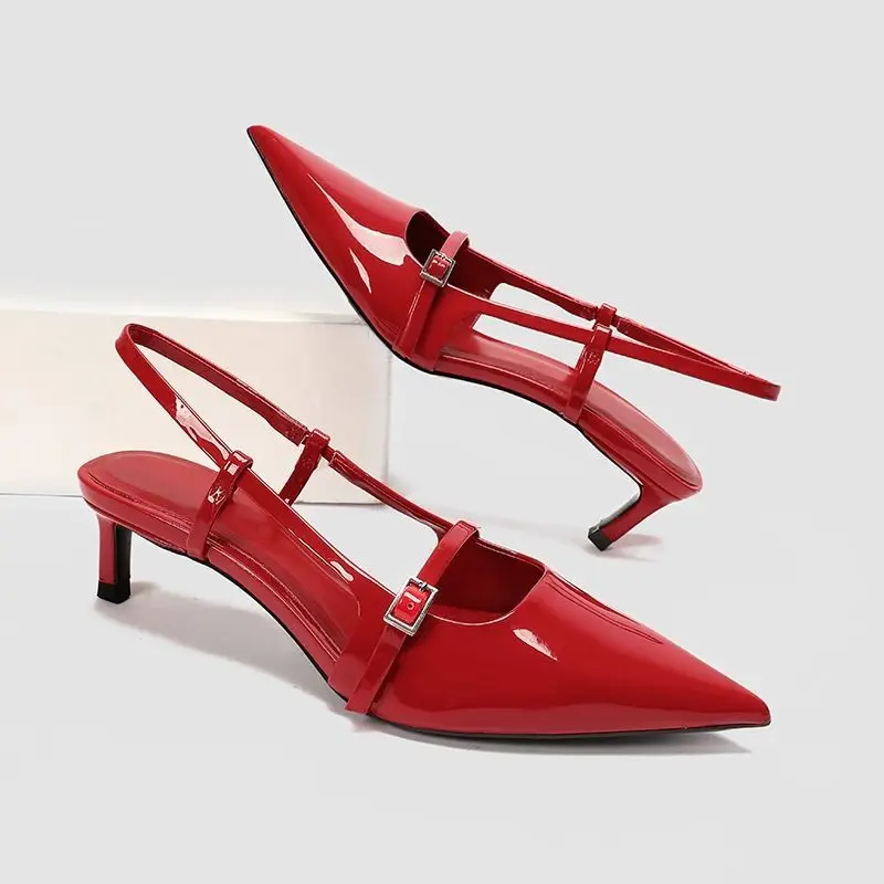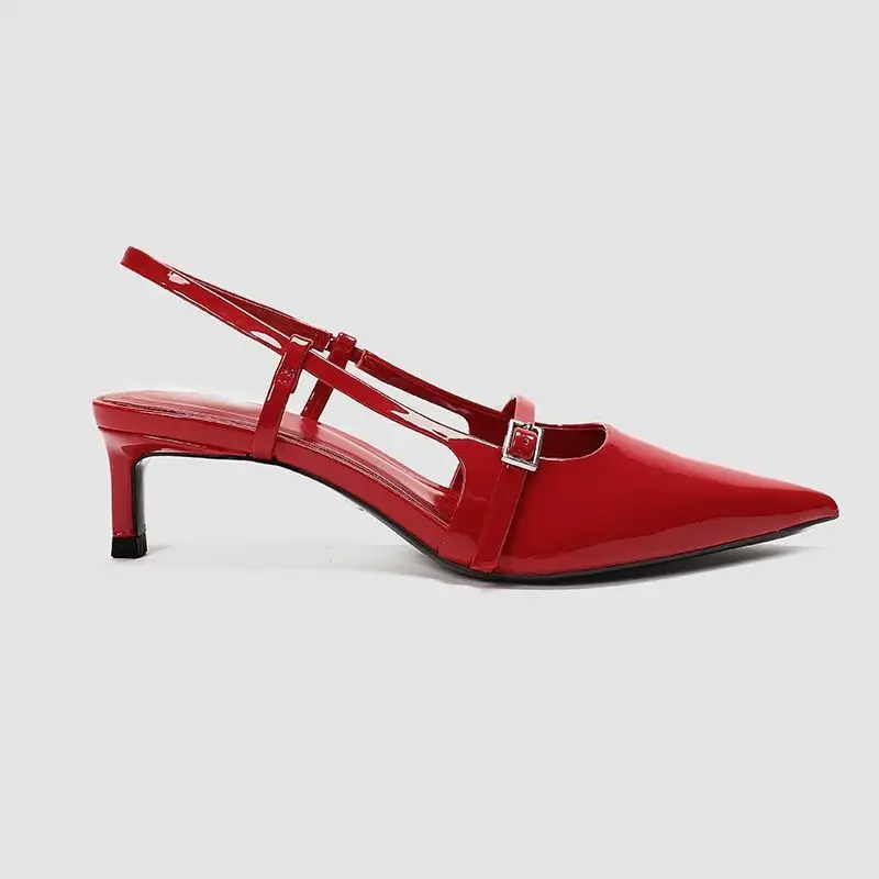 TRZA Women white shoes back strap high heels pointed tip Noble and Gorgeous European and American