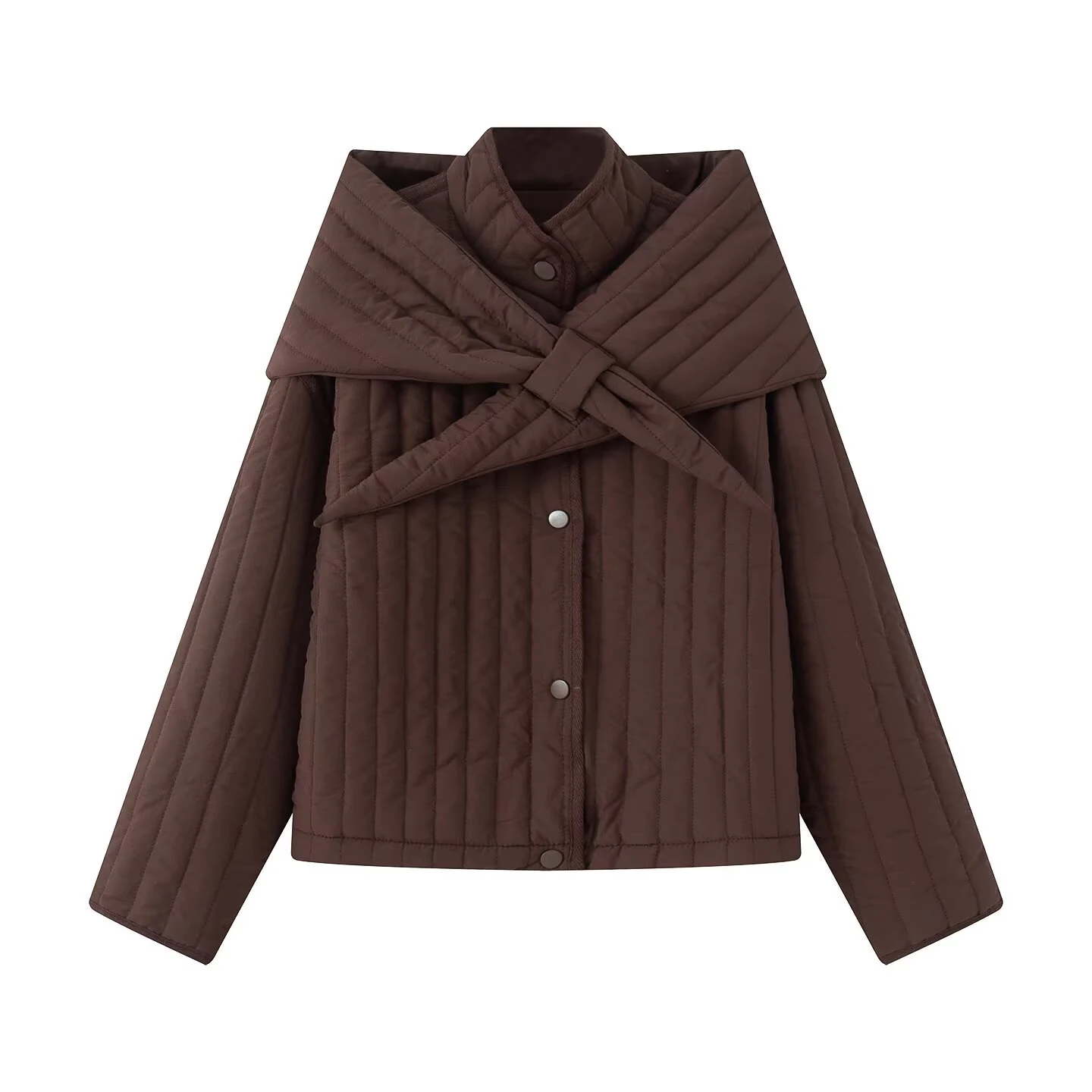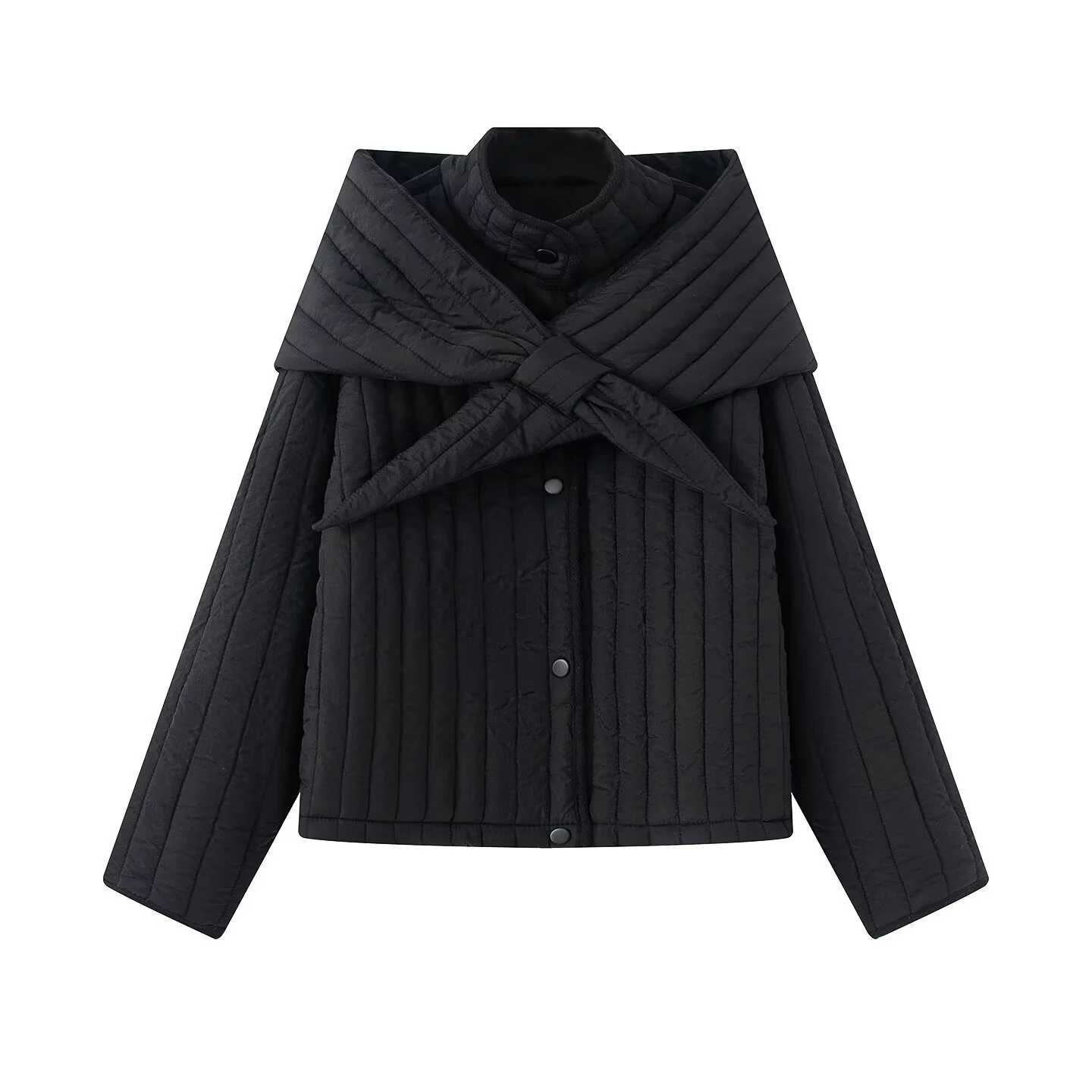 Winter New Product Women's Long Sleeve Stand up Collar Detachable Scarf Cotton Jacket Coat