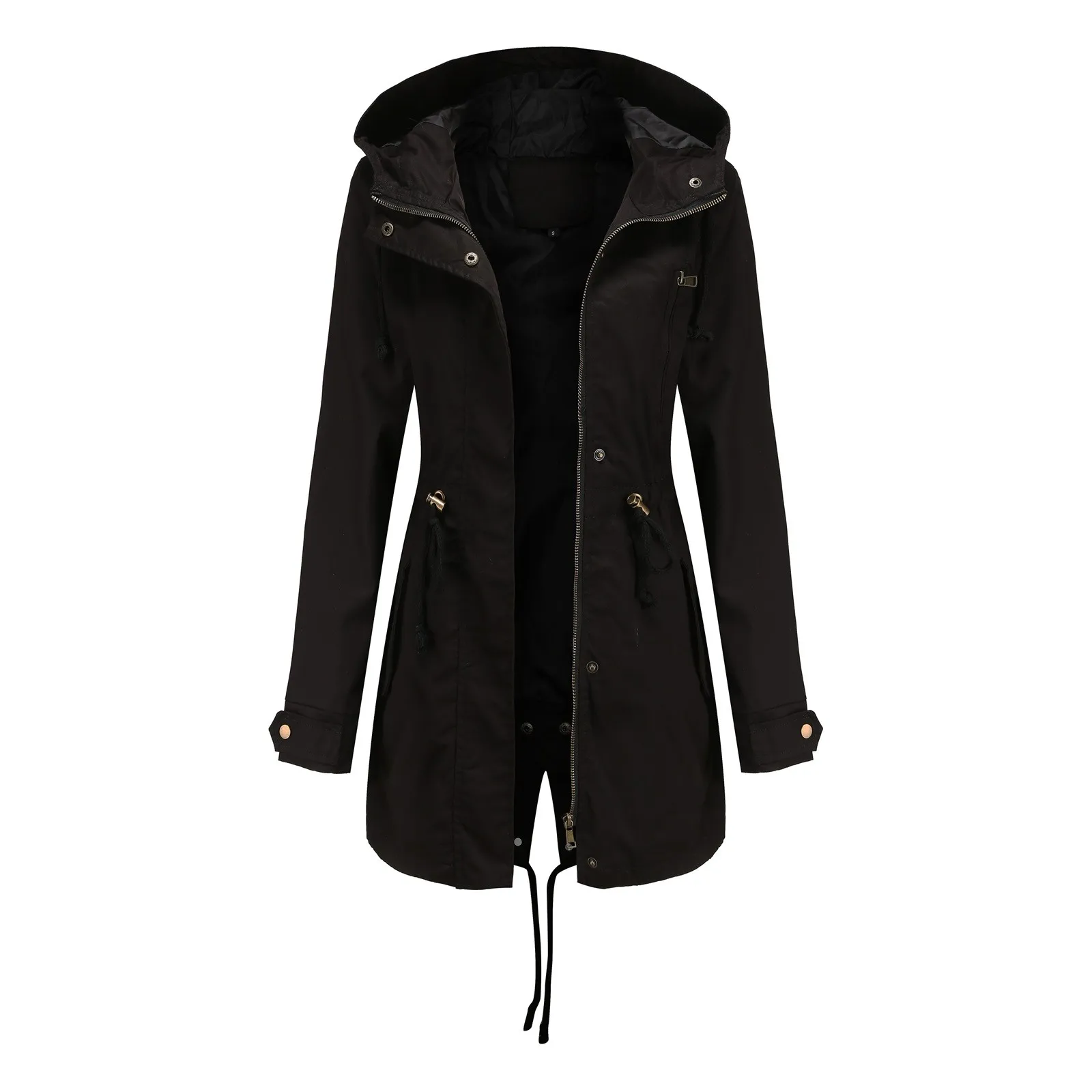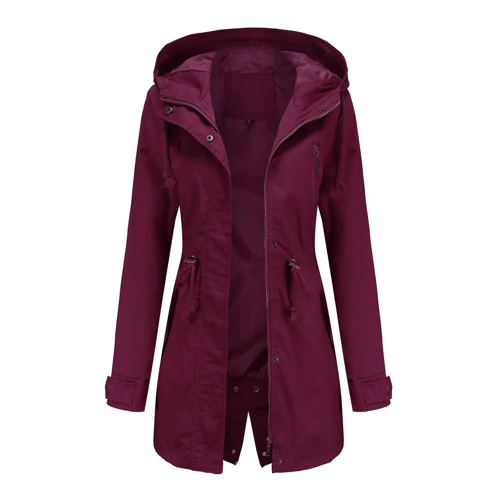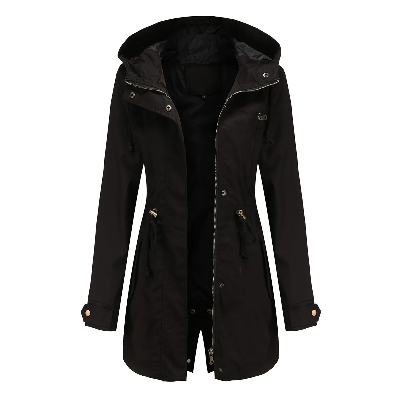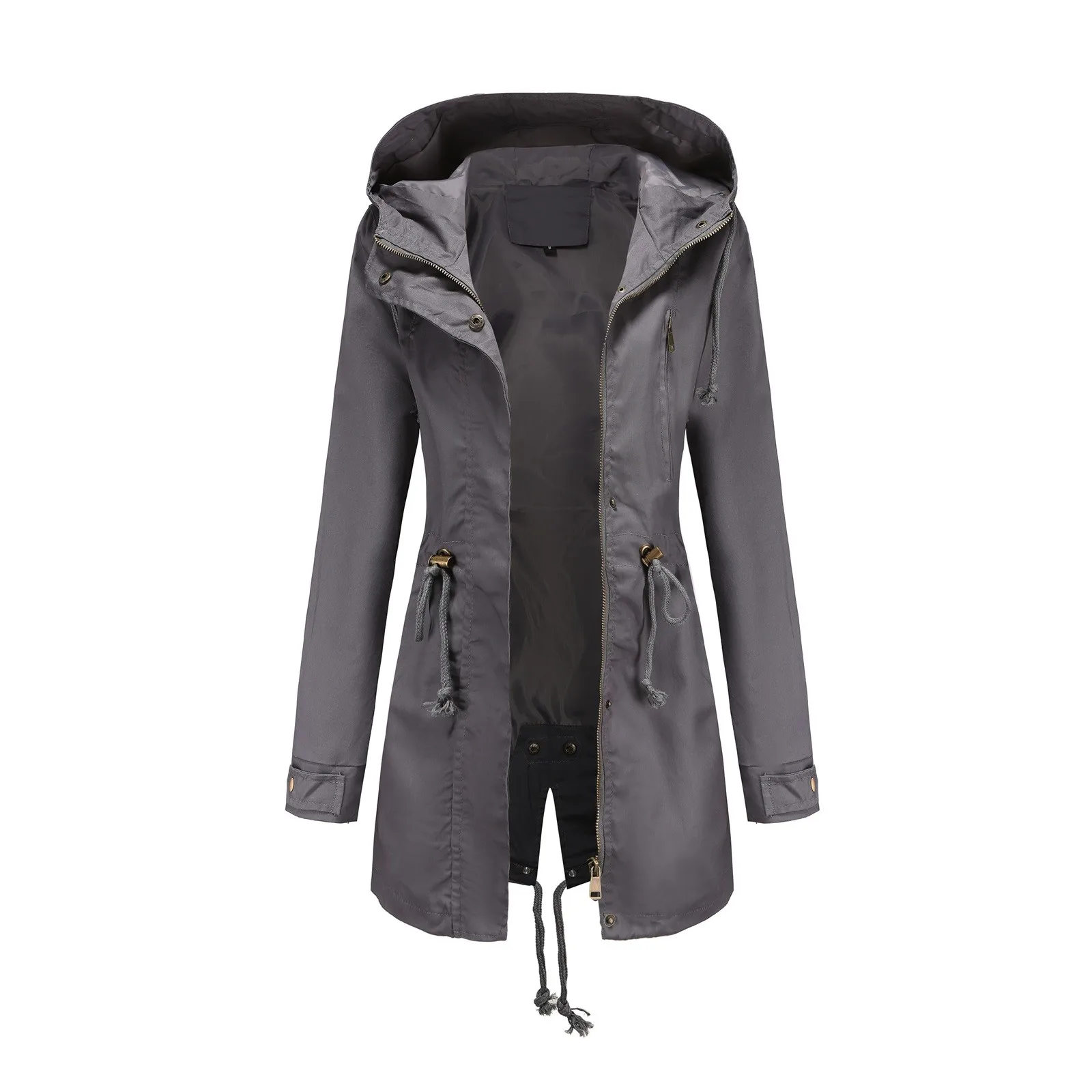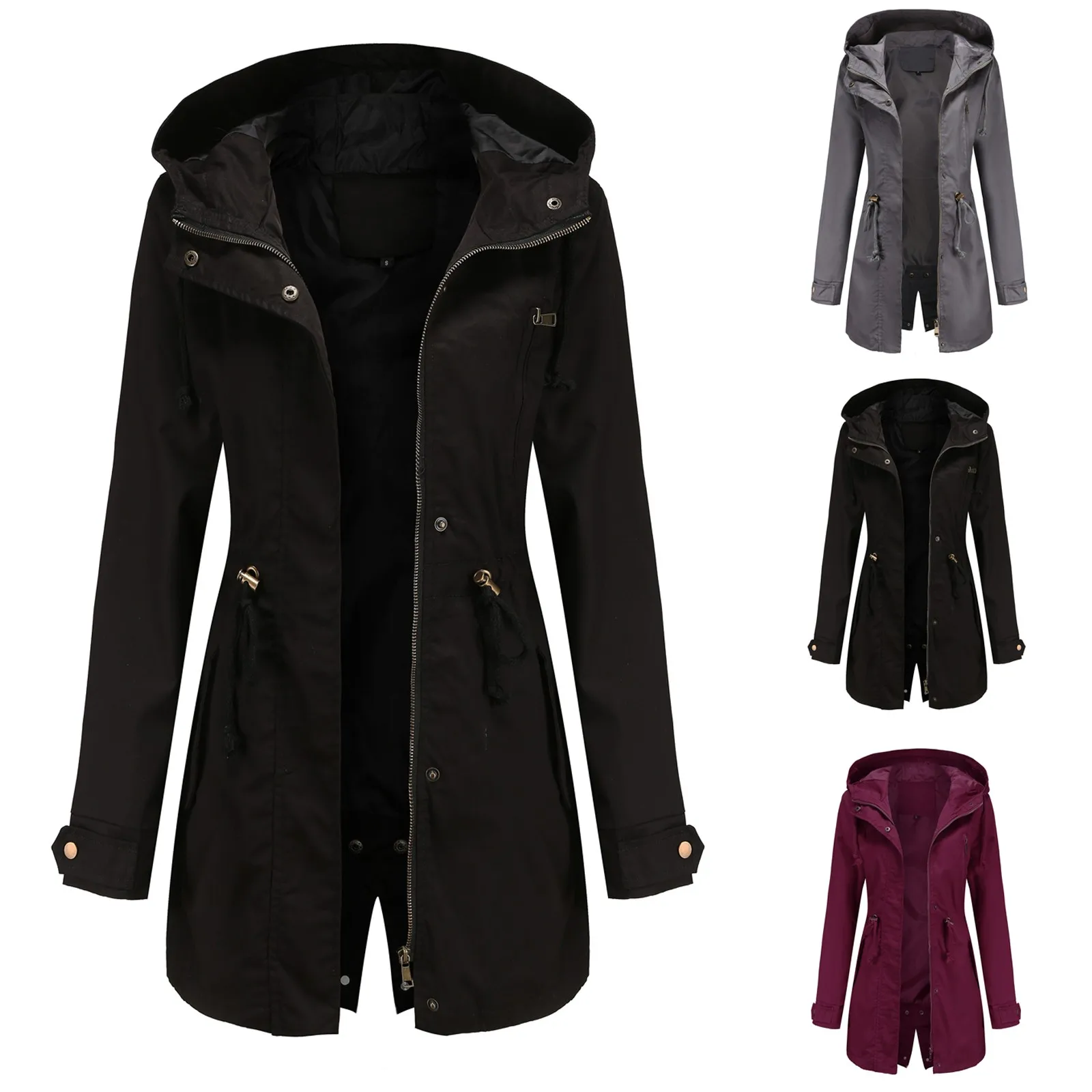 Women Jacket Active Outdoor Trench Windbreaker Coat With Hood Lightweight Plus Size Solid Zipper Windbreaker Waterproof Outwears