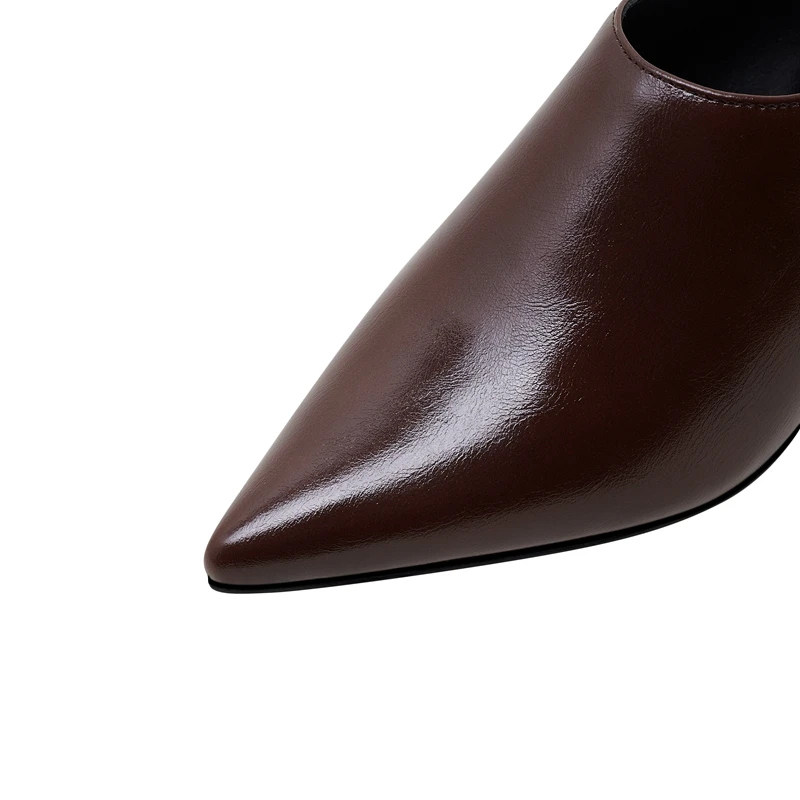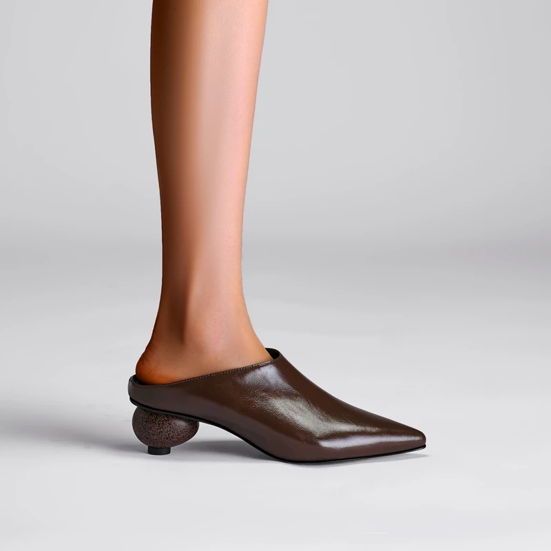 Women's New Summer European and American Sexy Genuine Leather Cowhide Square Head High Heel Large Size Muller Slippers